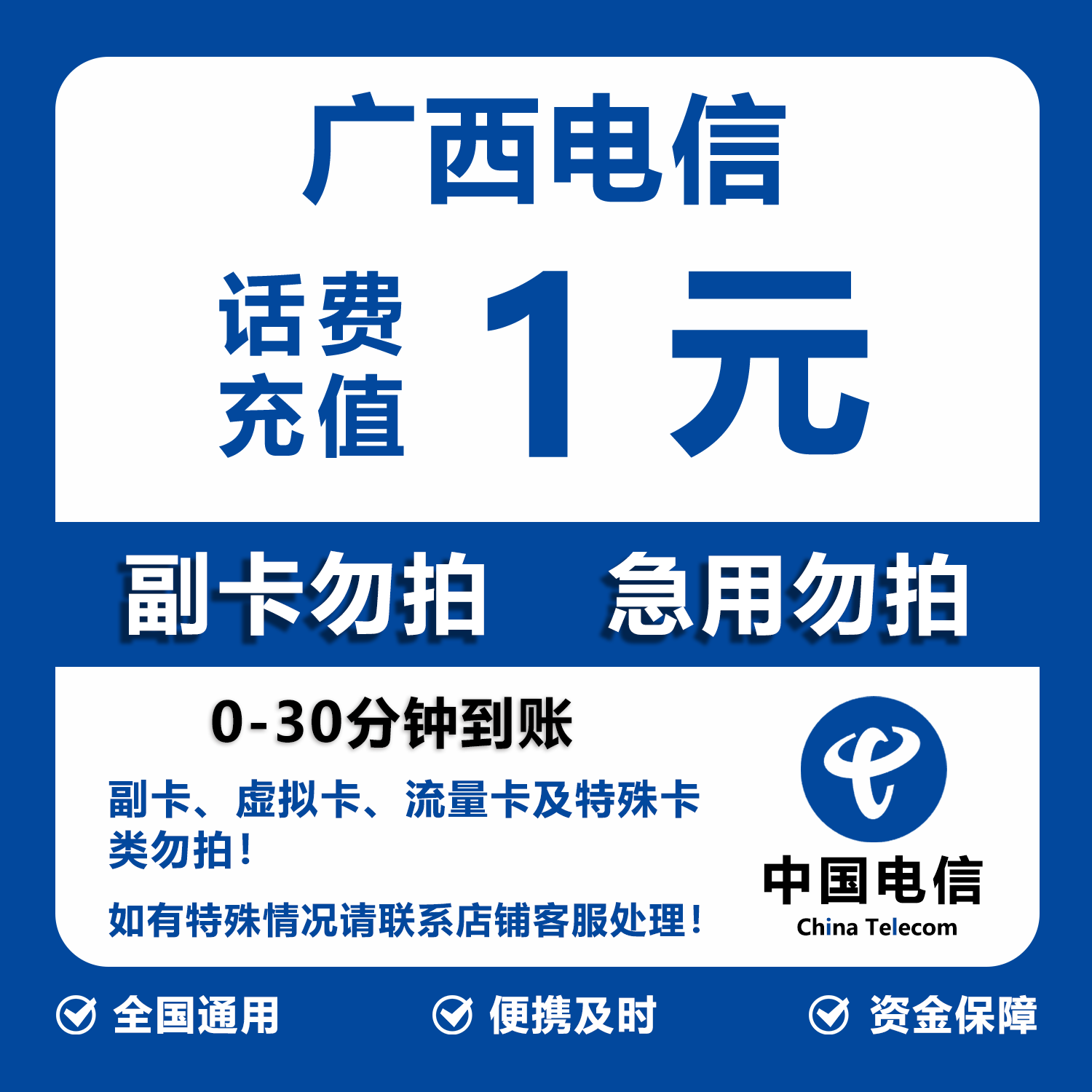 📚 广西电信话费充值 1元 快充直充 30分钟自动充值快速到账