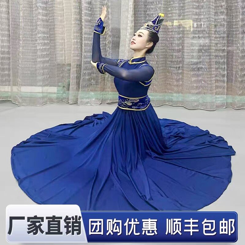 📚 蒙古舞蹈演出服大摆裙民族风艺考裙练习裙蒙族舞民族风长裙女成人