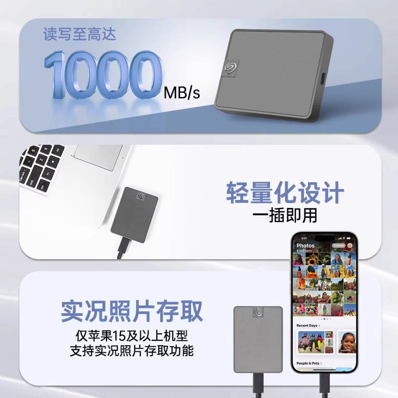 📚 Seagate希捷小翼移动固态硬盘1t手机电脑游戏专用高速ssd2t存储盘