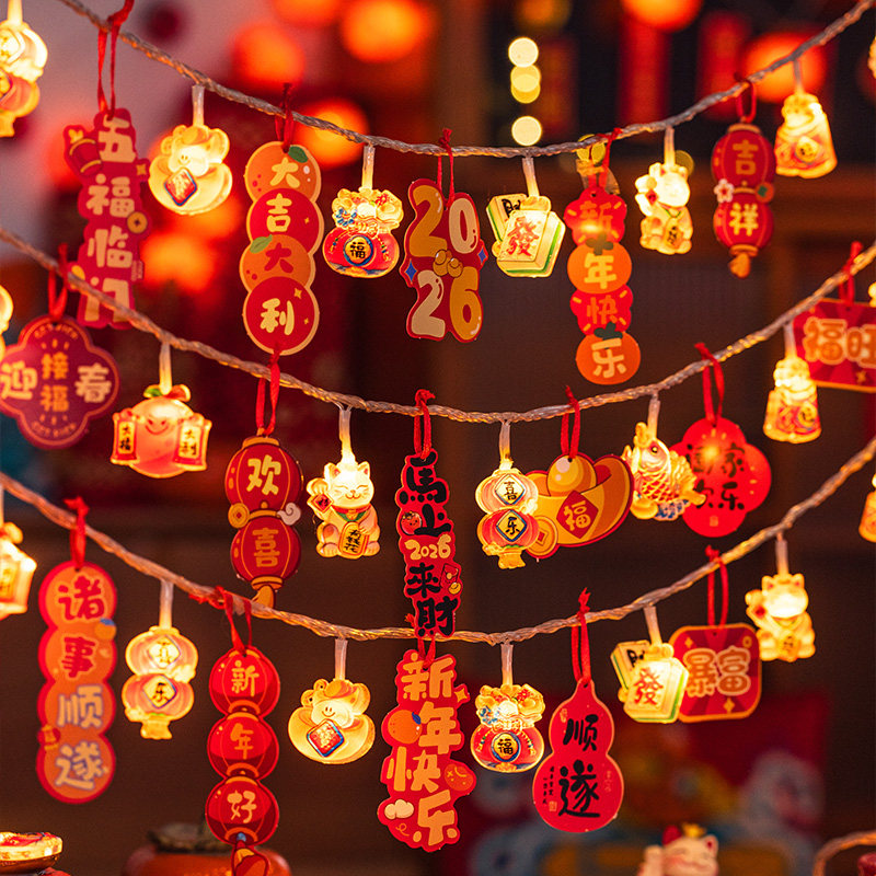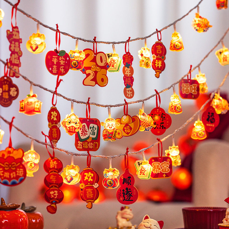 📚 新年装饰氛围灯带2026新款LED福字灯笼灯串春节过年户外彩灯串灯