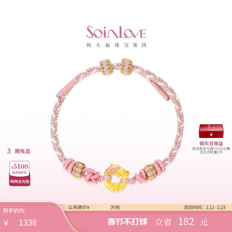 📚 周大福SOINLOVE蜜粉金十里红妆锦鲤莲花平安扣手链手绳情人节礼物