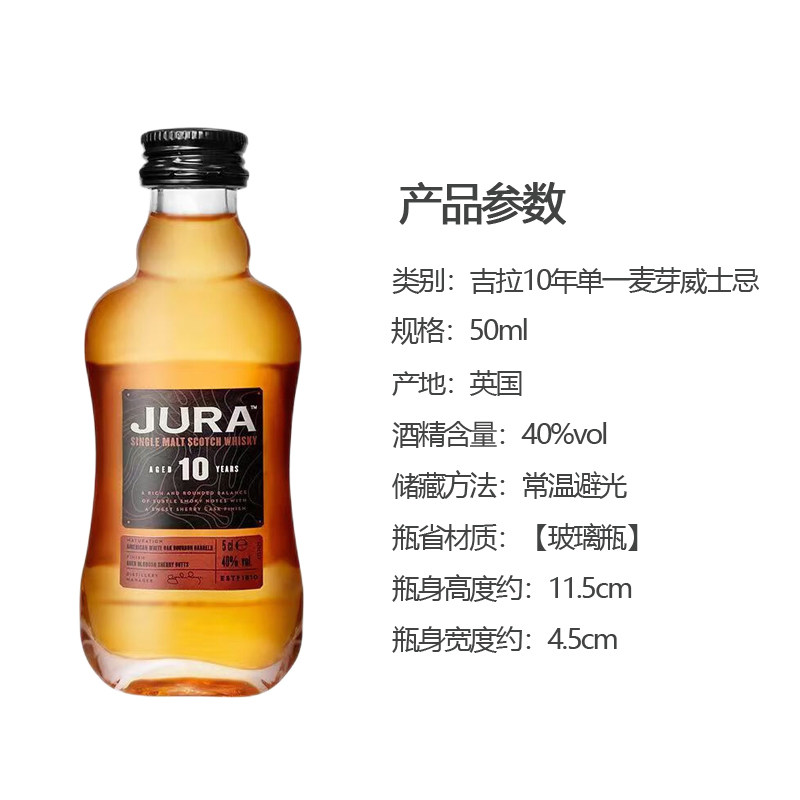 📚 Jura/吉拉10年单一麦芽威士忌50ml 小酒版小瓶酒版便利店调酒洋酒