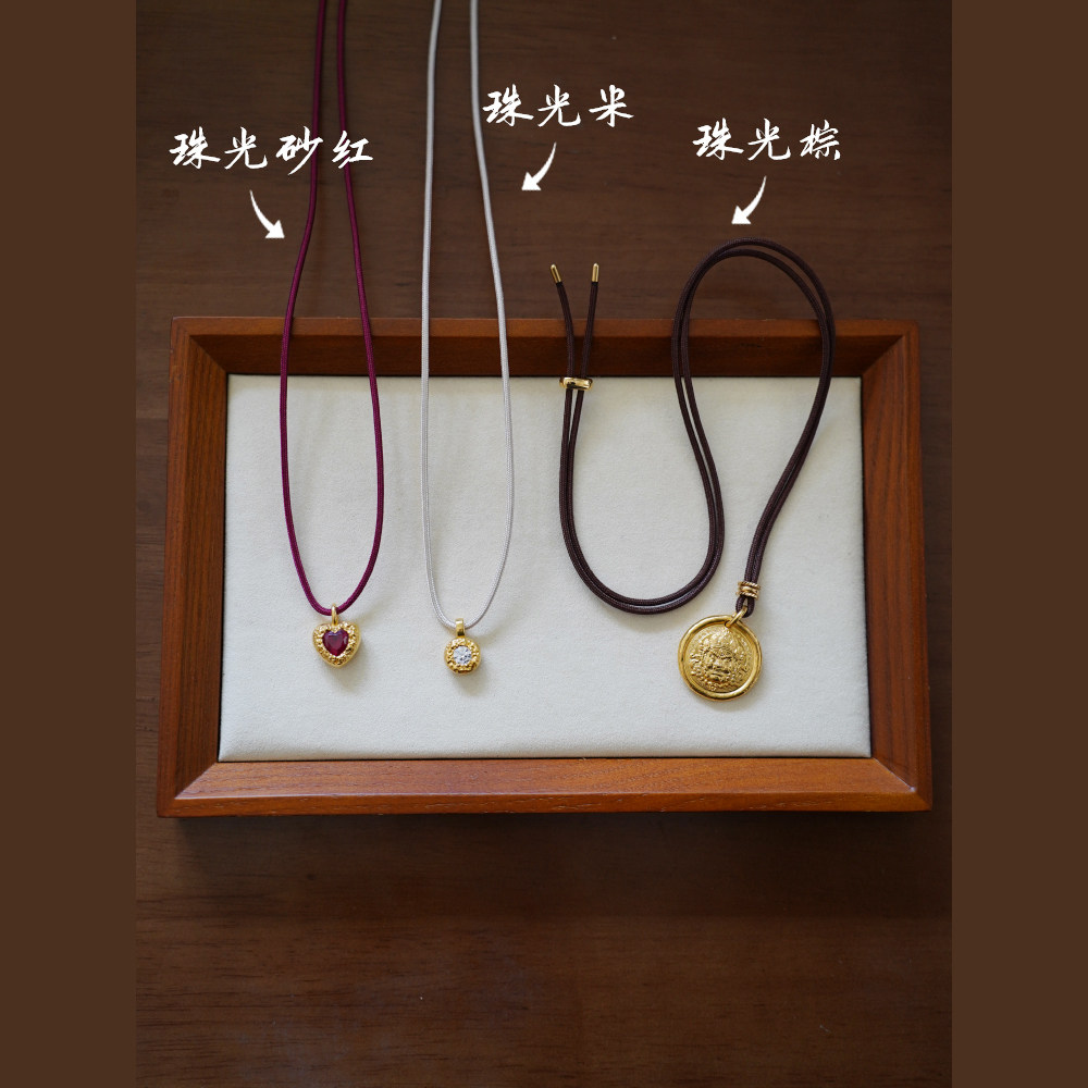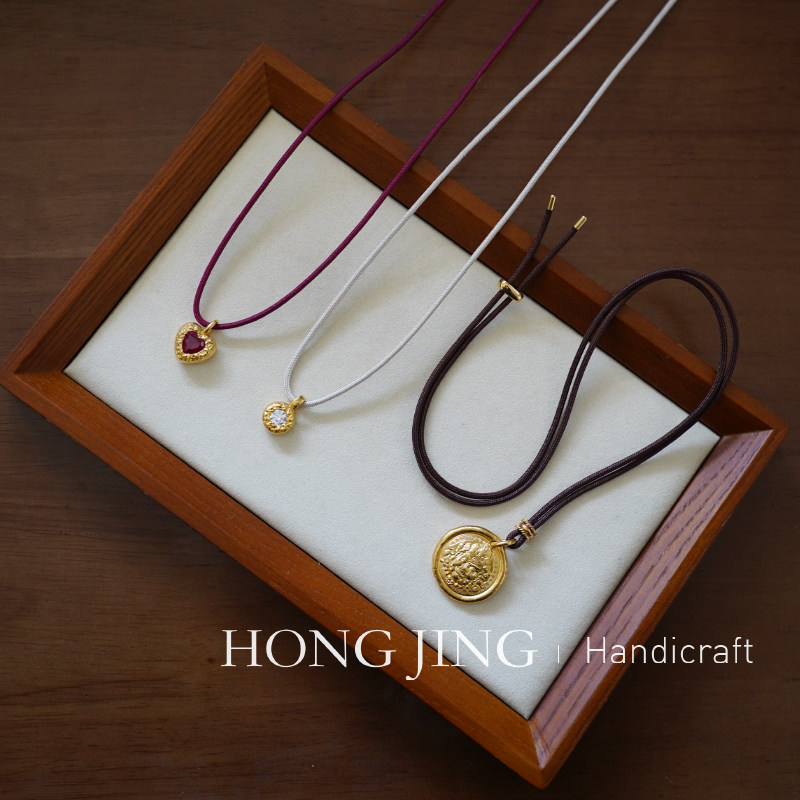 📚 洪菁手作 2.0mm珠光高捻米白色编绳毛衣链玉石黄金吊坠挂绳项链绳