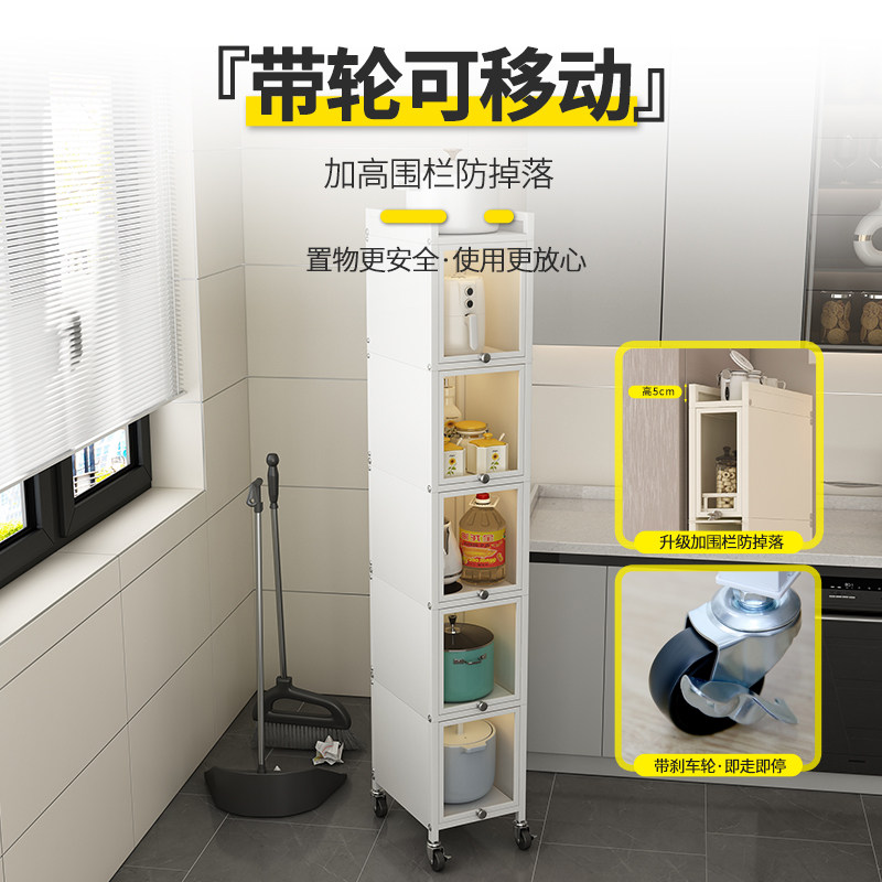 📚 20cm宽厨房夹缝置物架小尺寸落地多层冰箱旁侧面缝隙极窄收纳柜子