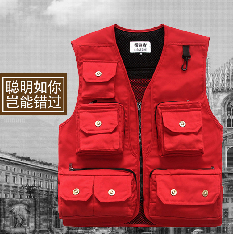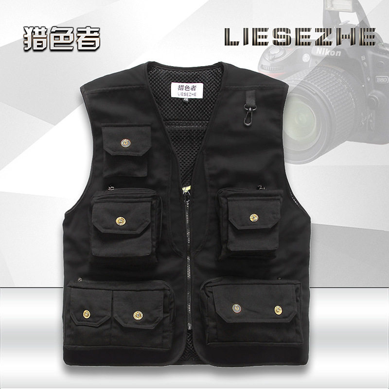 📚 春秋细棉帆布记者马甲男女多袋摄影像户外休闲钓鱼两用背心坎肩