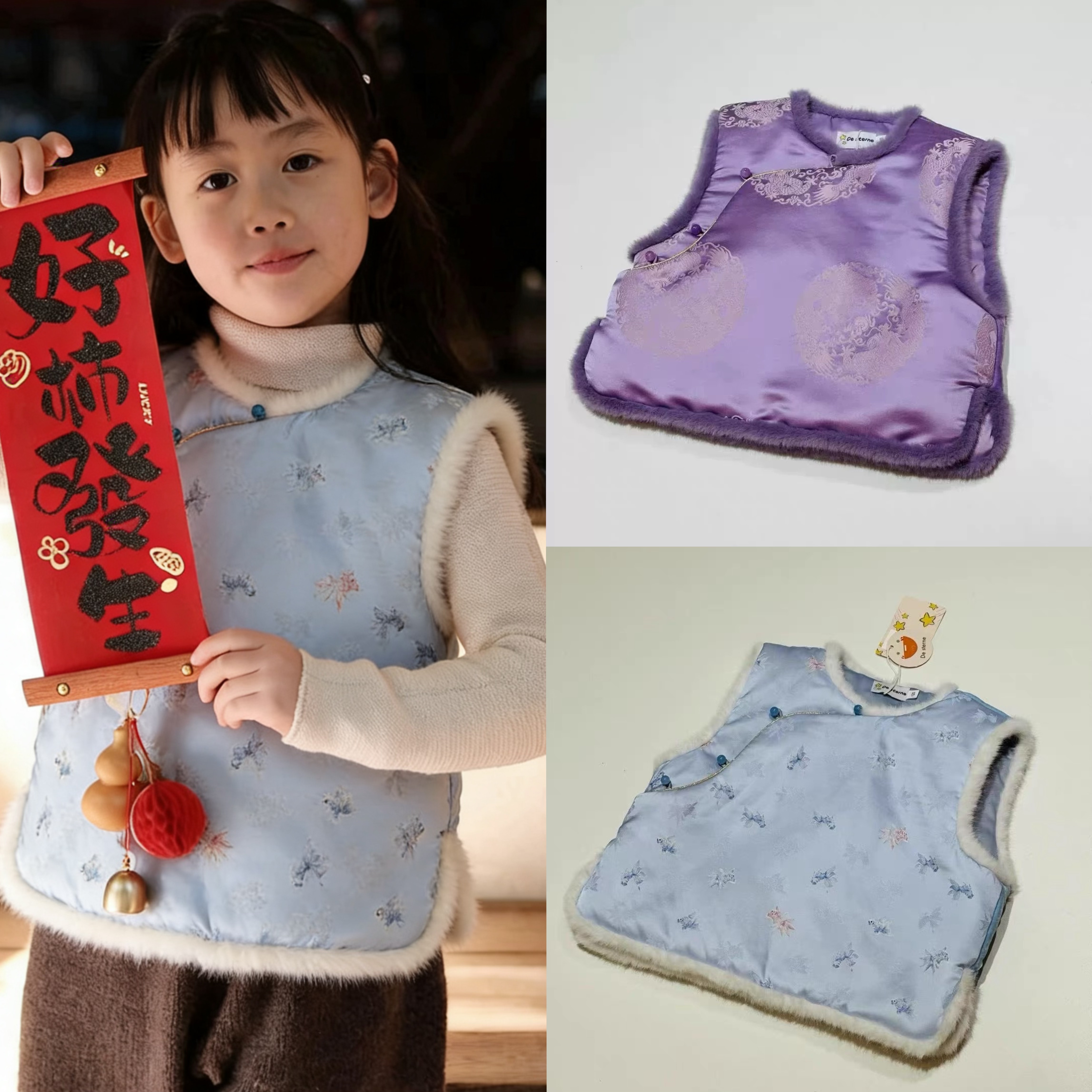 📚 【实体清仓】De Sterne男女童背心新中式国风刺绣织金马甲棉服