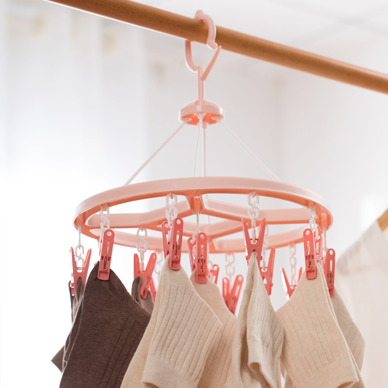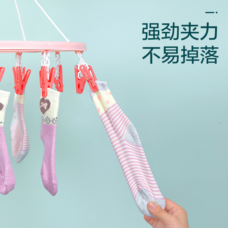 📚 茶花晾衣架多夹子挂晒宝宝婴儿袜子夹神器阳台内衣内裤晾晒架圆形