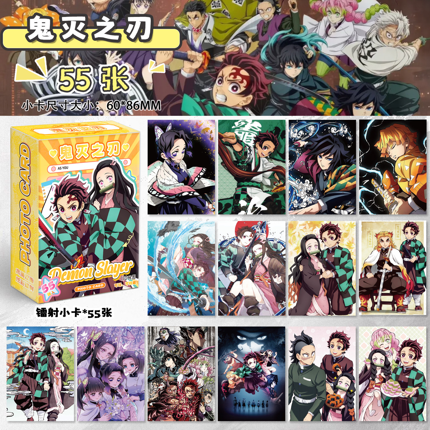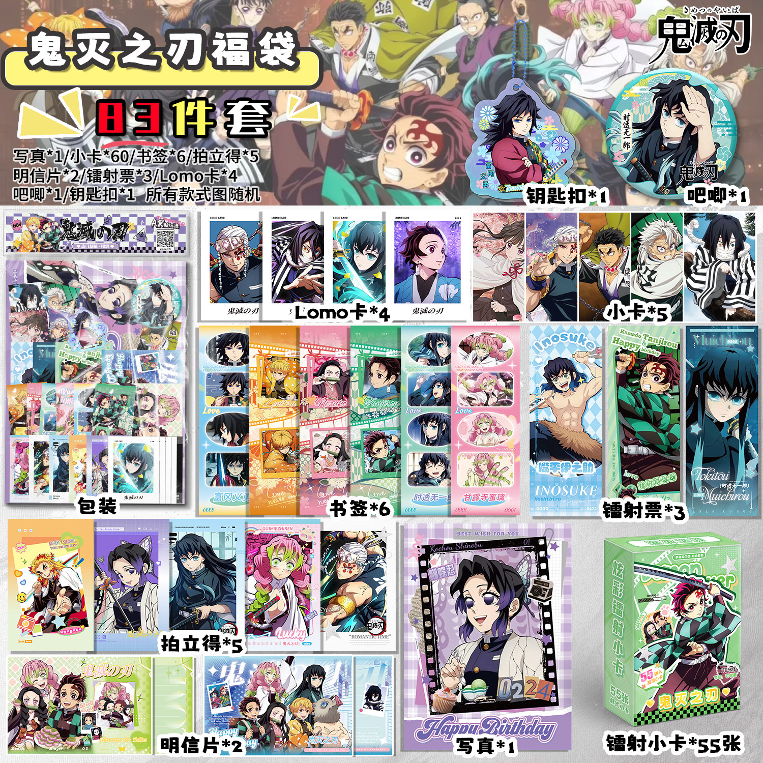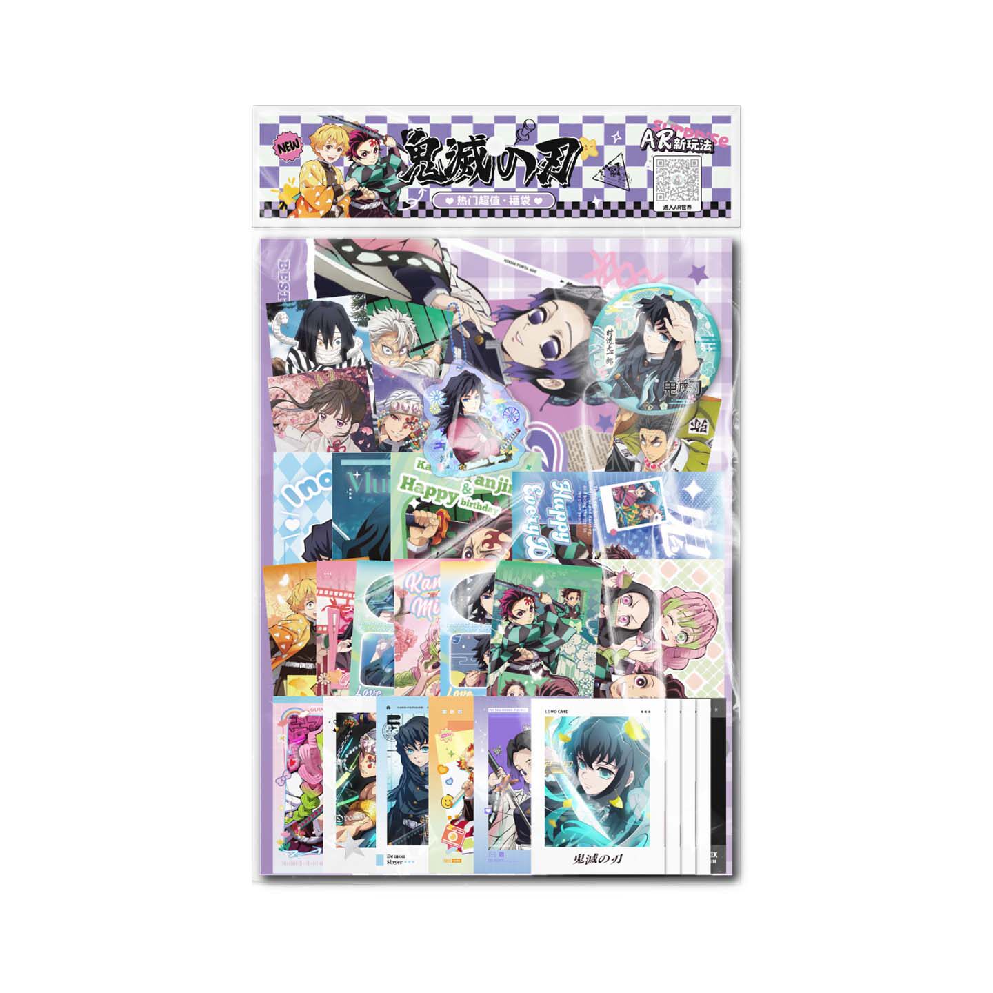 📚 鬼灭之刃周边福袋写真拍立得小卡镭射票书签明信片礼物吧唧徽章