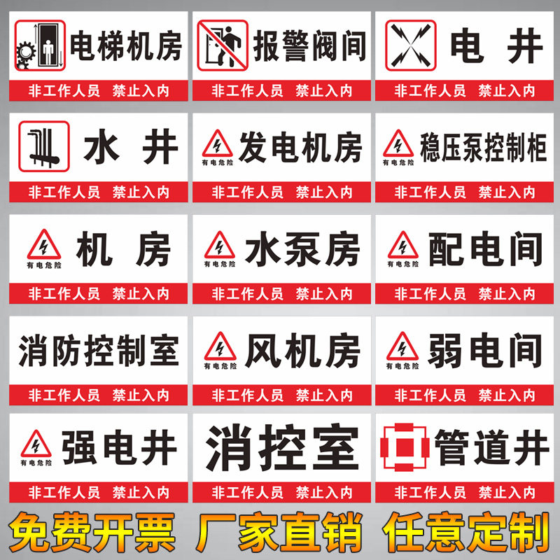📚 消防水泵房风机房配电房标识牌消控室强弱电间管道井电梯机房发电送风机房设备运行门牌标牌警示牌提示牌定制
