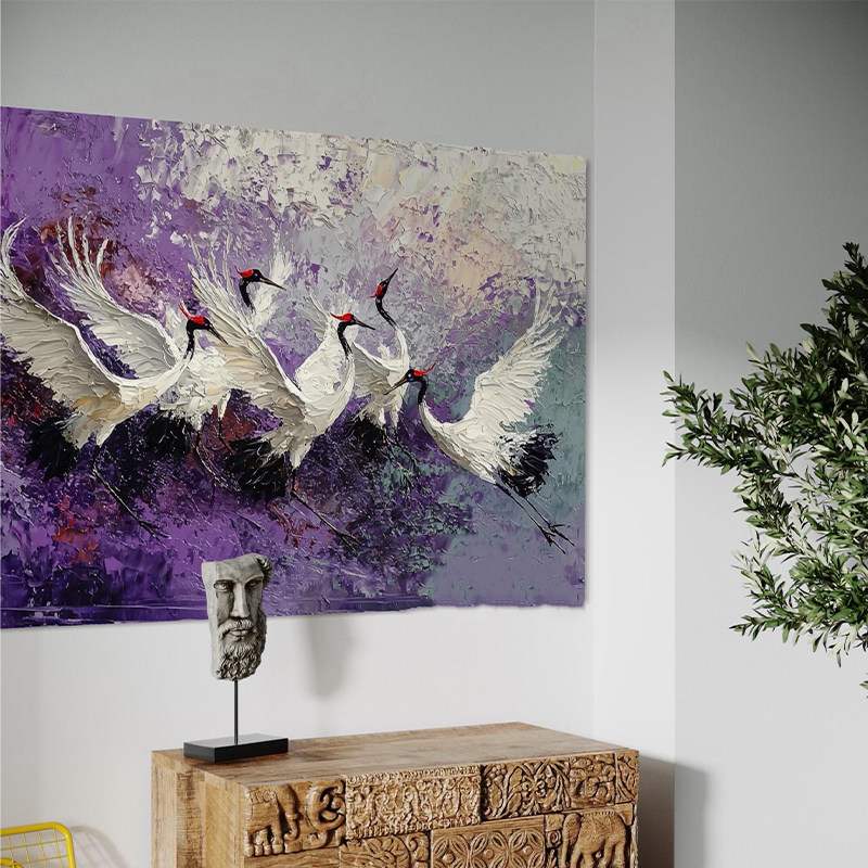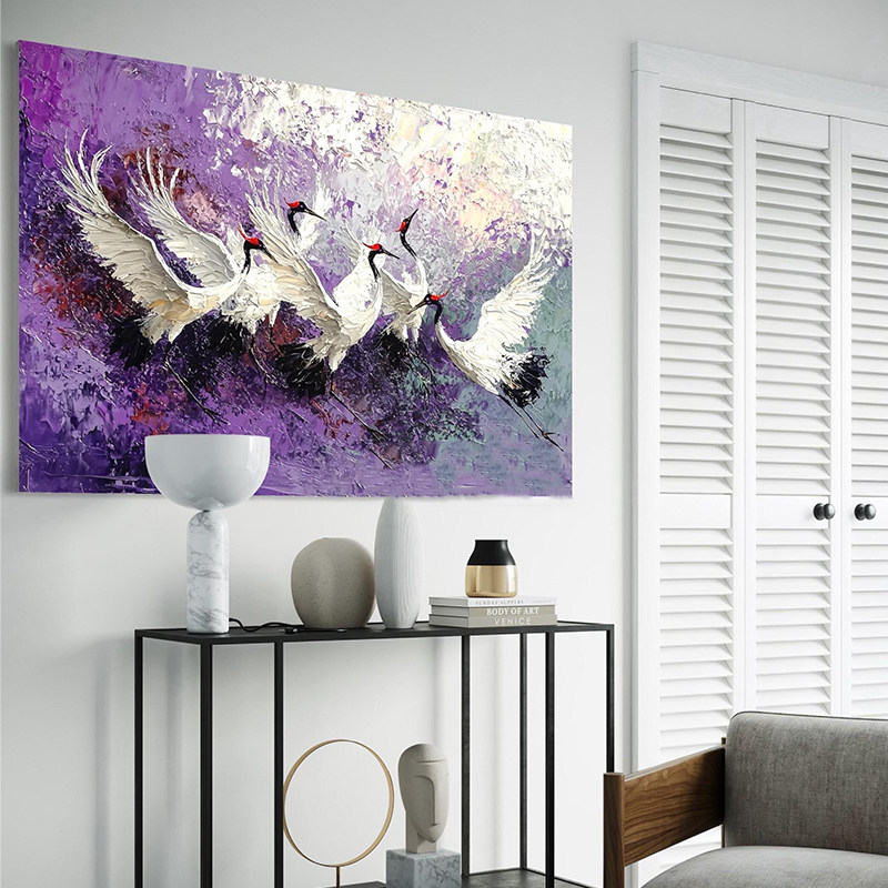 📚 新中式仙鹤图办公室装饰画客厅玄关松鹤延年丹顶鹤禅意中古风挂画