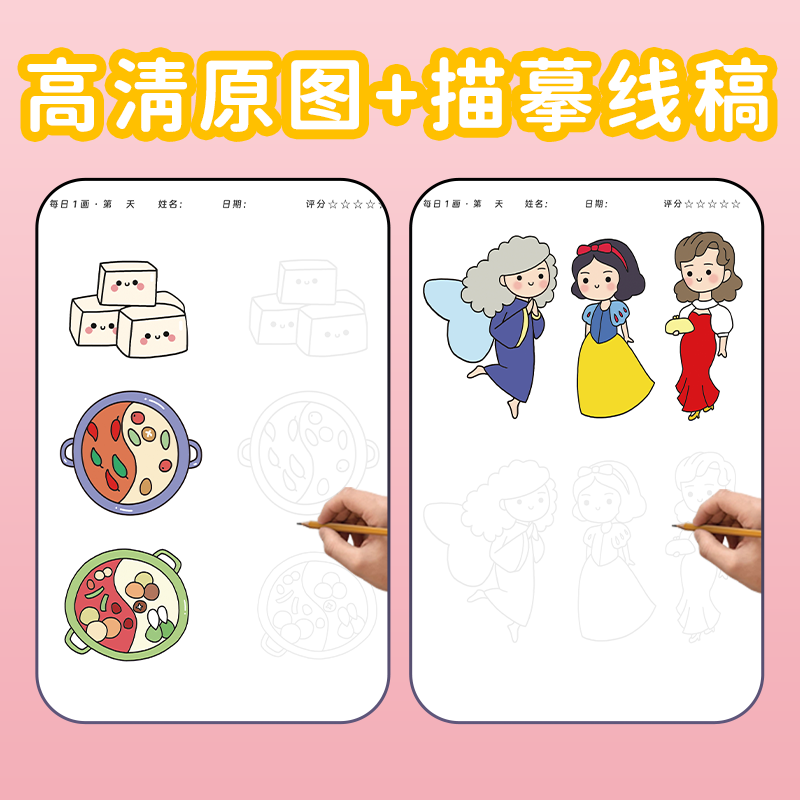 📚 儿童简笔画描摹本卡通动物线稿描绘画画本图画临摹画册漫画手绘