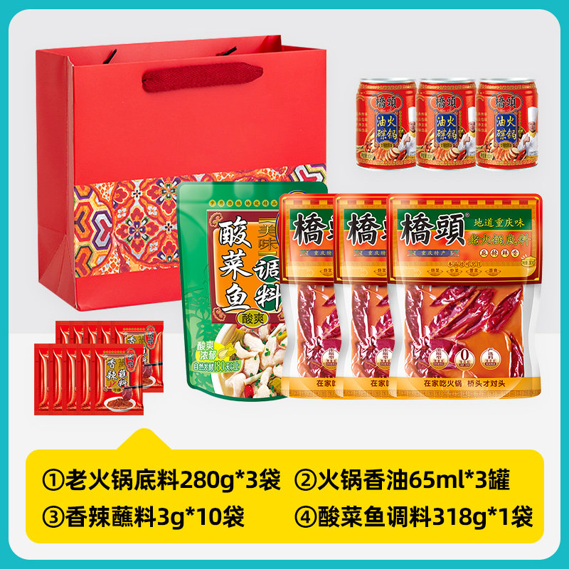 📚 【伴手礼】正宗重庆特产桥头火锅底料礼盒礼袋装送人礼物家用调料