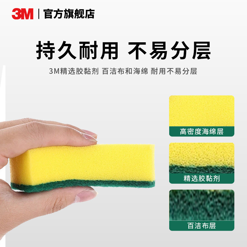 📚 3M思高海绵百洁布餐饮多效去油去污厨房专用清洁洗碗布96-M7401-M