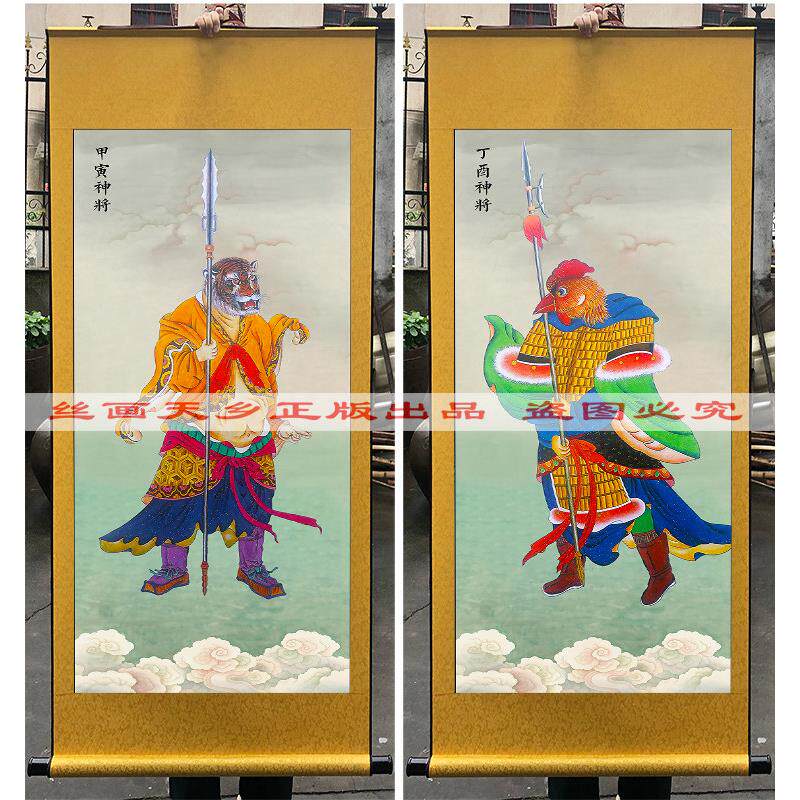📚 国画田东里丁六甲胄画十二生肖造像悬挂画入口装饰绢卷画