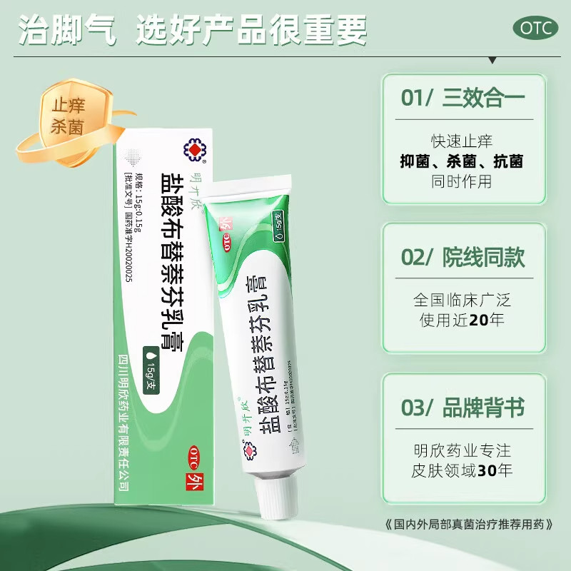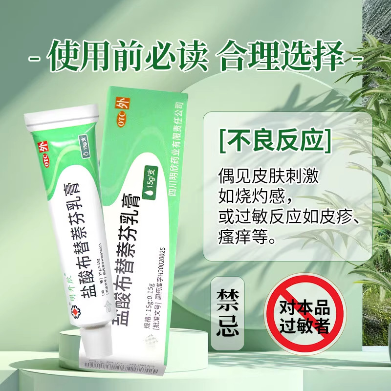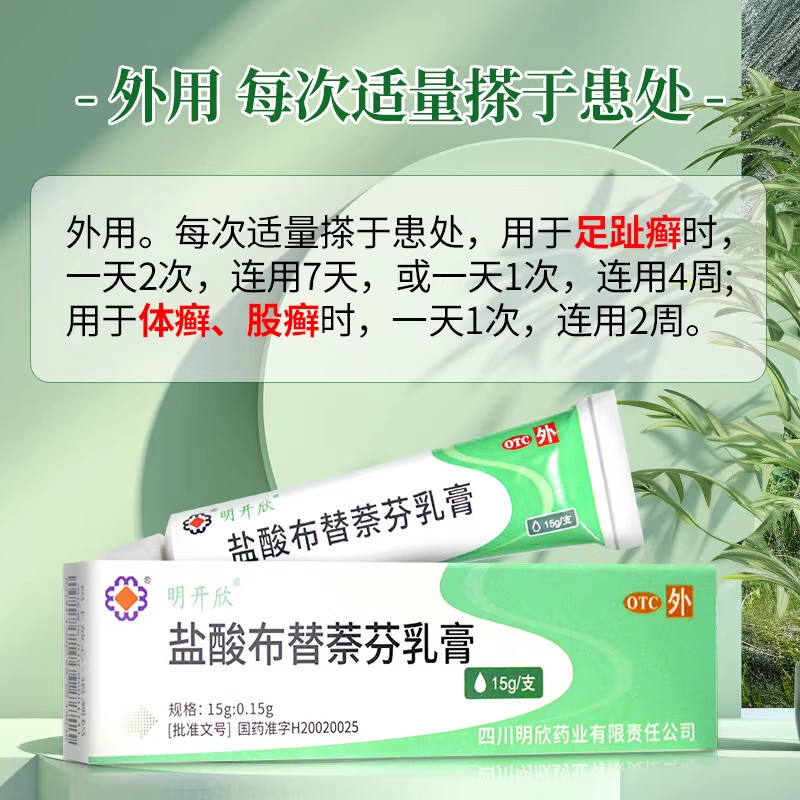 📚 明开欣盐酸布替萘芬乳膏官方旗舰店15g真菌汗斑足癣体癣股癣软膏