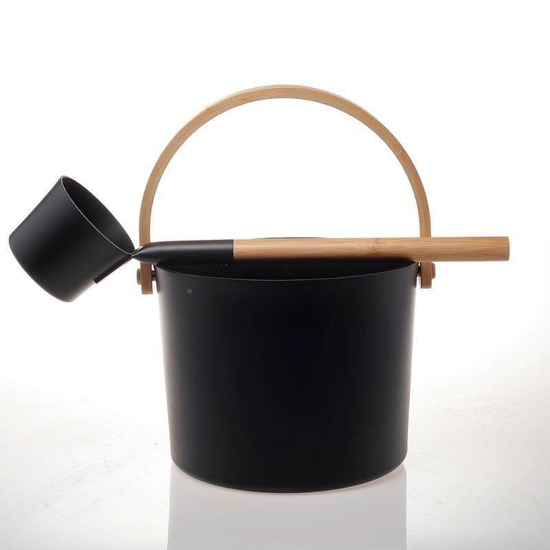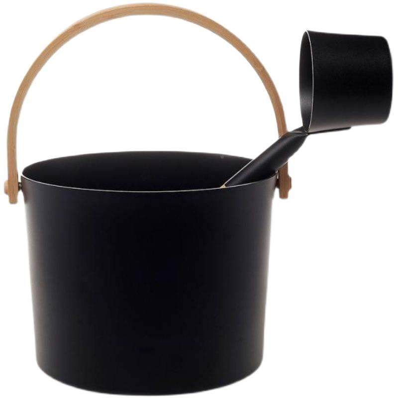 📚 厂价销桑黑色铝拿桶铝勺圆勺桑拿房用竹提手铝桶铝勺直7OZEL喷涂