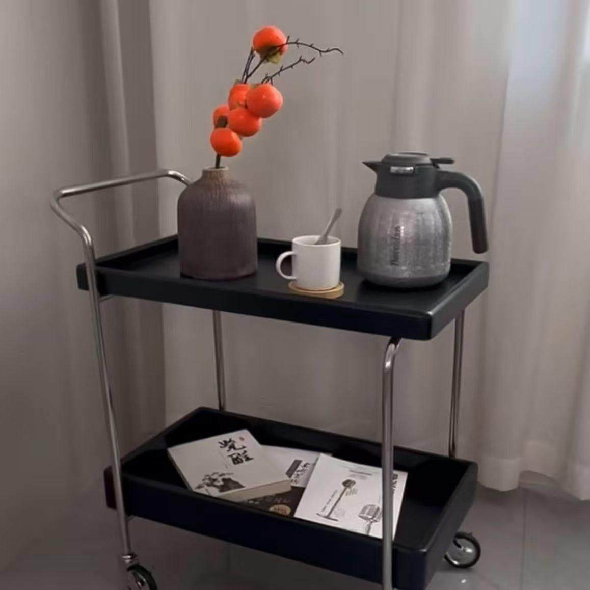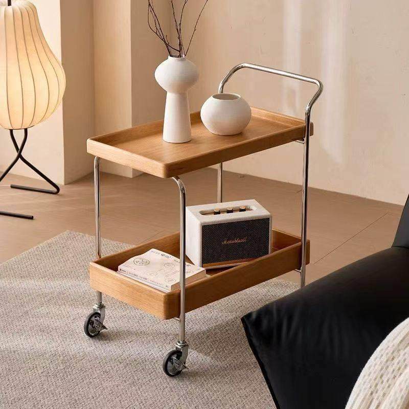 📚 中古实木边几可移动沙发小边几桌子边柜小推车床头带轮双层置物架