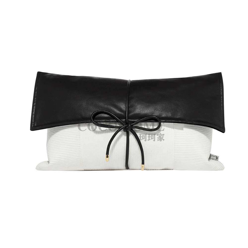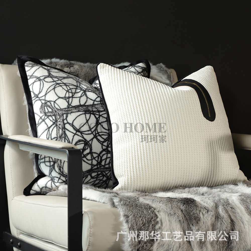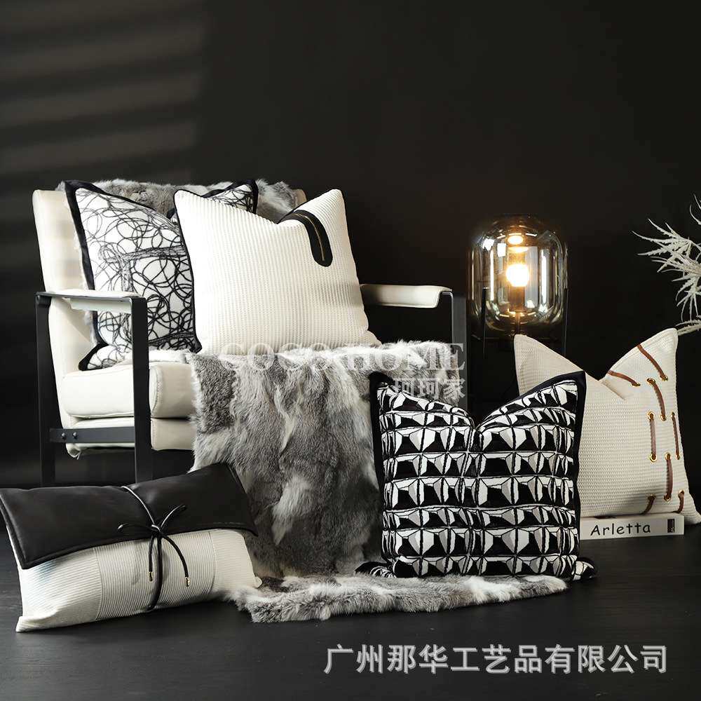 📚 高档样板房沙发抱枕套酒店卧室黑白系靠垫高级时尚搭配狐狸毛毯