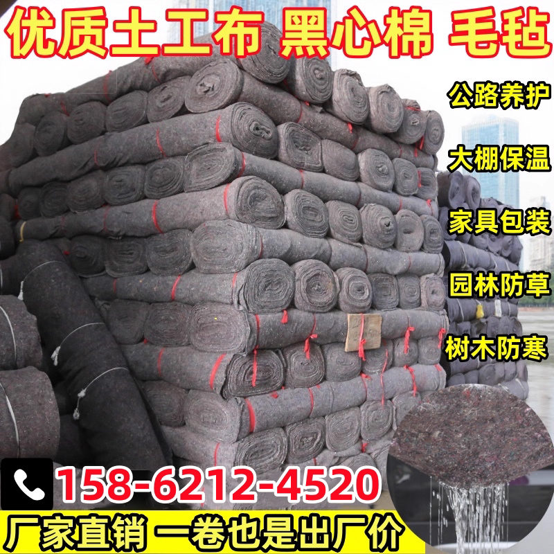 📚 工程土工布黑心棉毛毡公路养护混凝土保湿大棚保温棉被家具包装毯