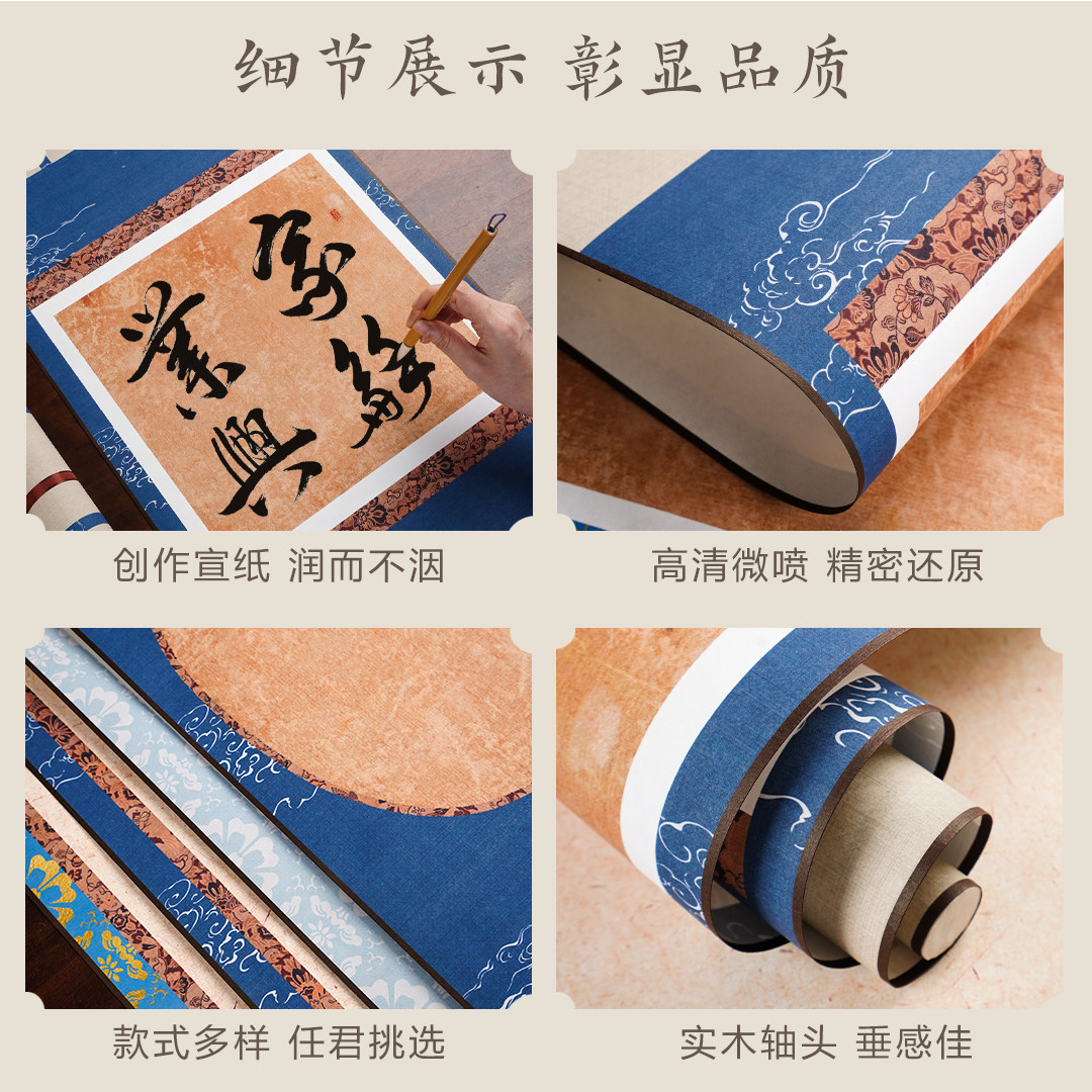 📚 韵江南宋式微喷文创蜡染宣纸书法挂轴卷轴空白挂画竖轴蜡染半生熟毛笔书法作品纸学生练习创作立轴定制批发