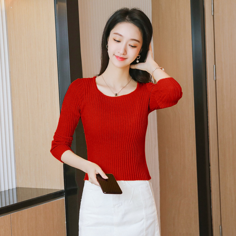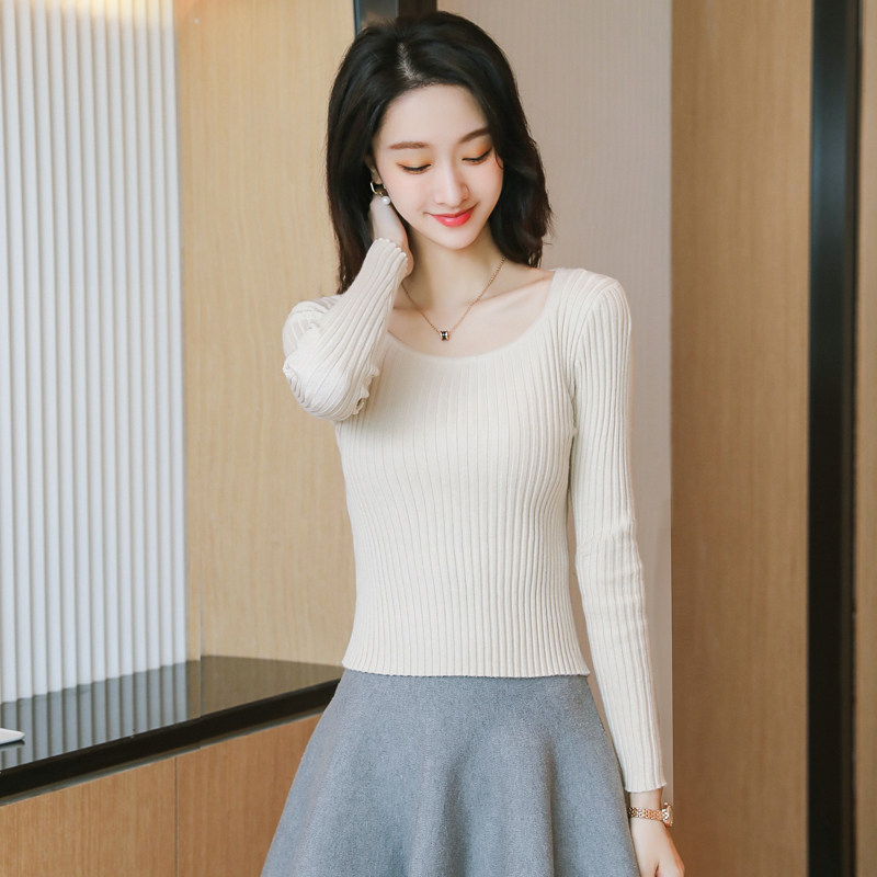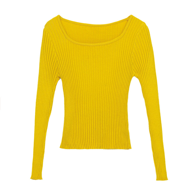 📚 方领针织衫女短款高腰长袖毛衣女士早秋薄款低圆领柔软保暖打底衫
