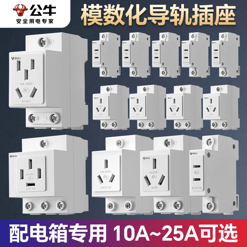 📚 公牛导轨插座16安三孔四孔五孔10A轨道式模数化空气开关32a配电箱