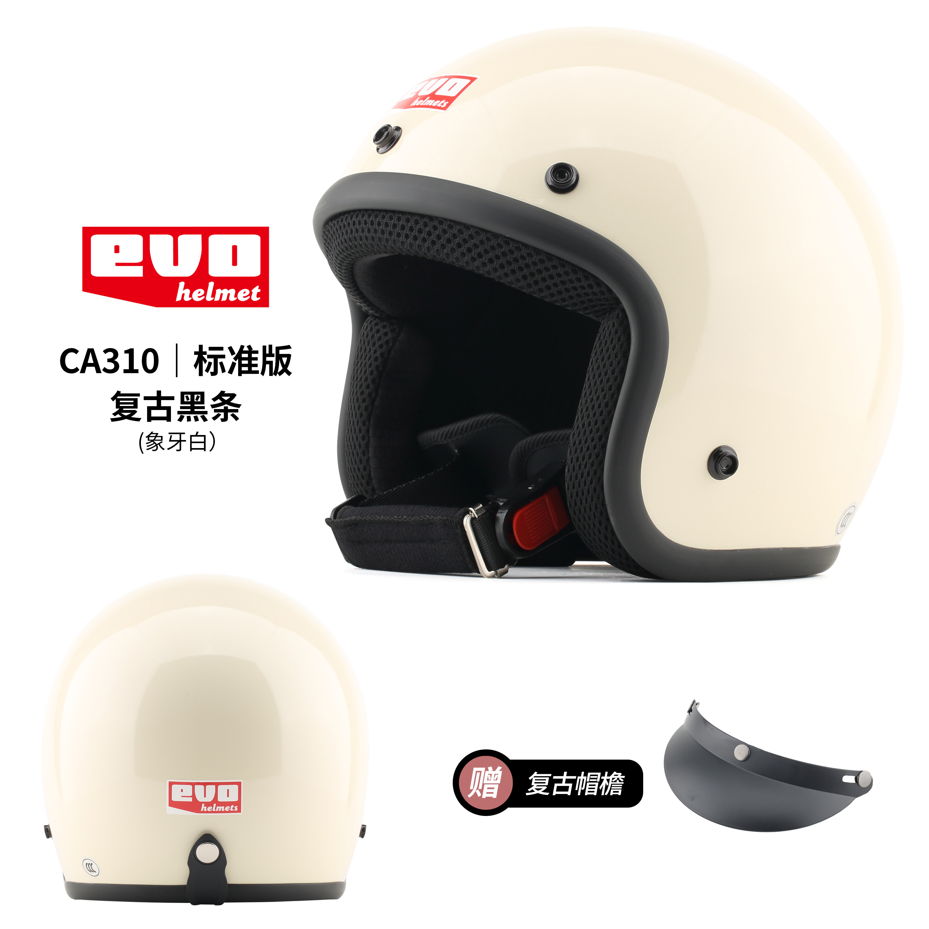 📚 台湾evo 黑条复古头盔巡航你踏板机车安全帽摩托车3/4半盔男女