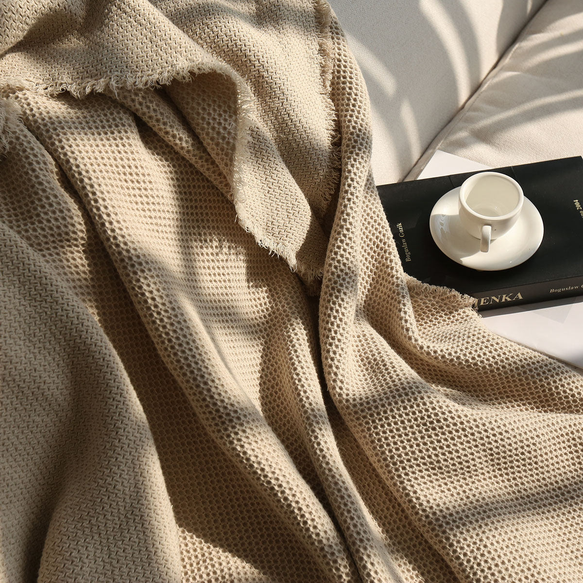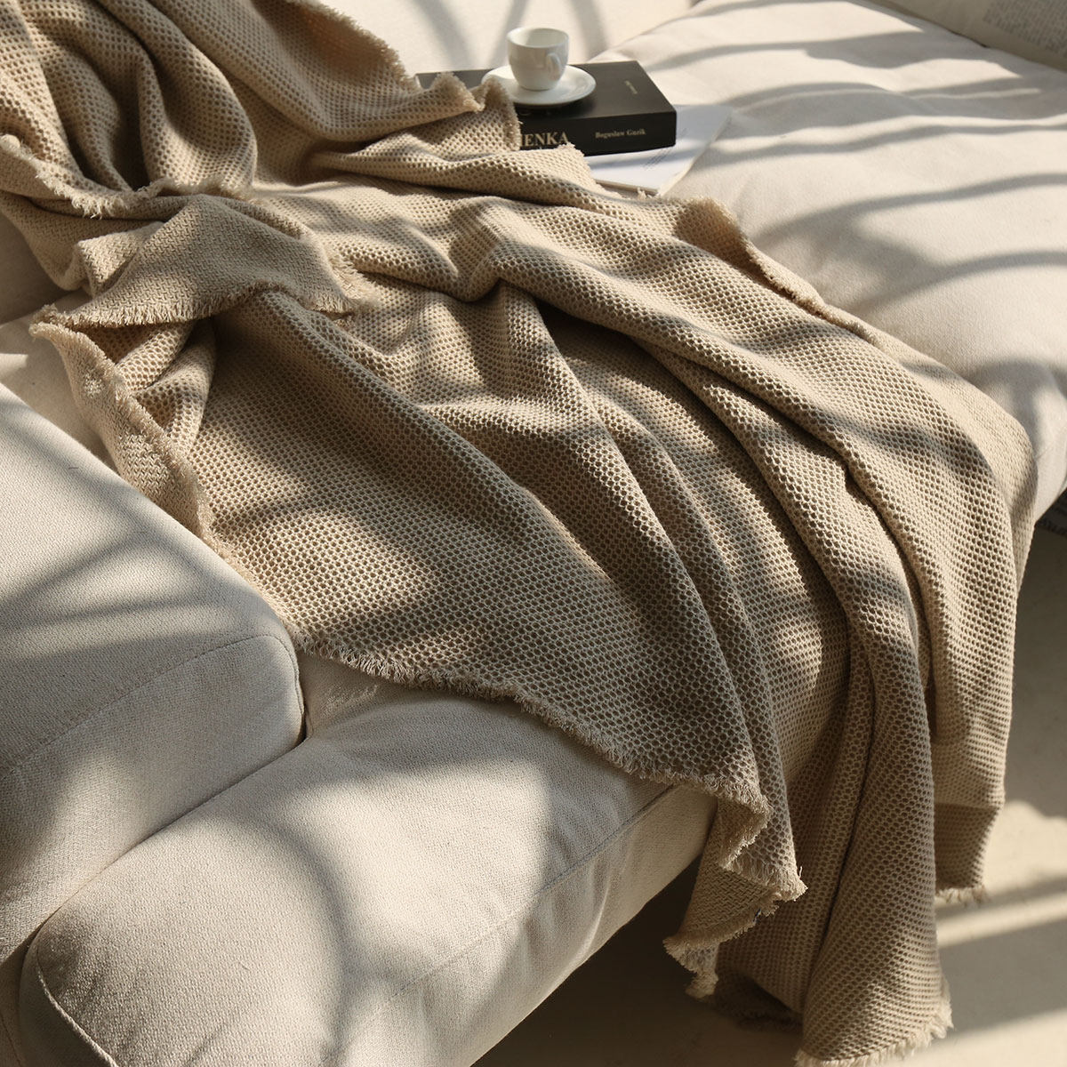 📚 松松软软的侘寂风提花毯子 棉麻蜂巢纹理感沙发巾百搭多用途盖毯