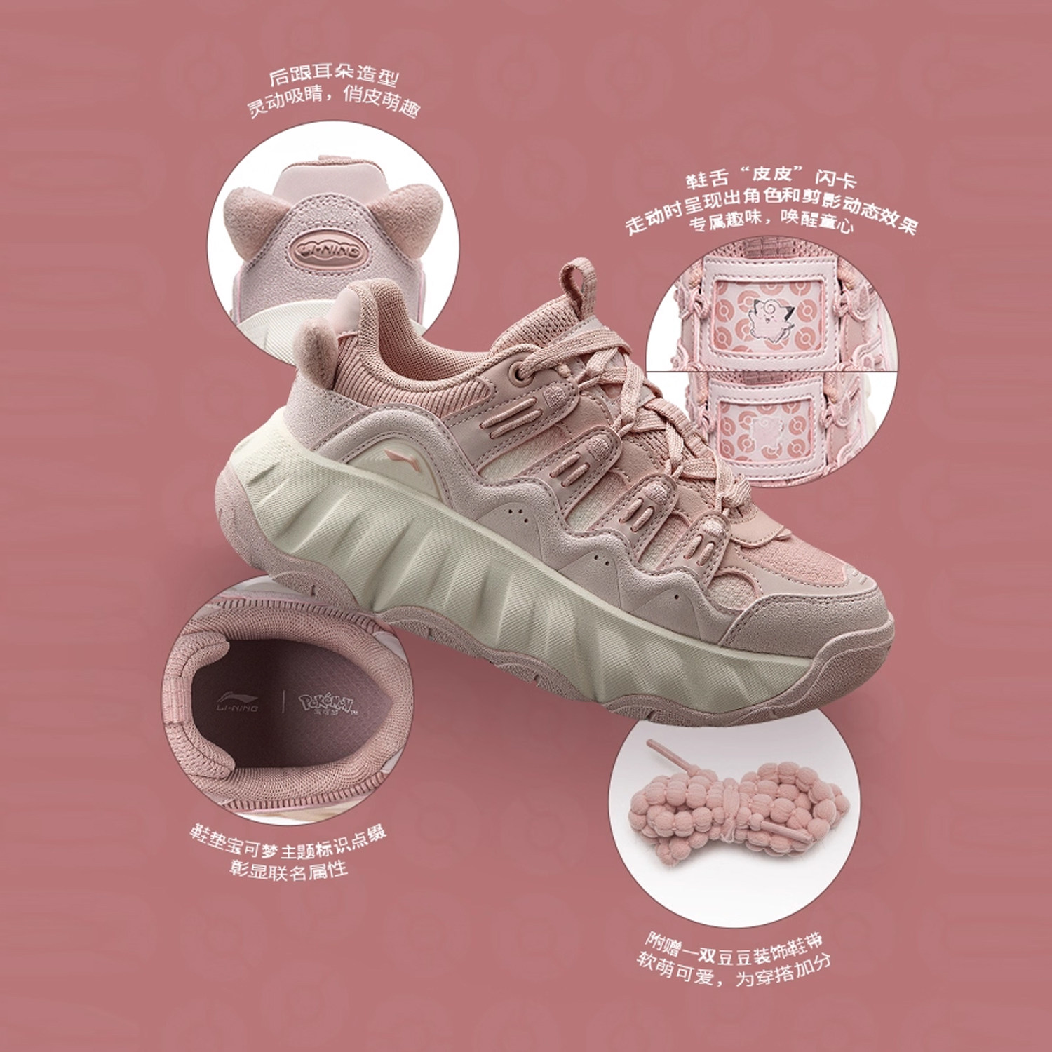 📚 李宁运动老爹鞋女款猫爪姜饼人增高软弹轻质复古美拉德经典休闲鞋