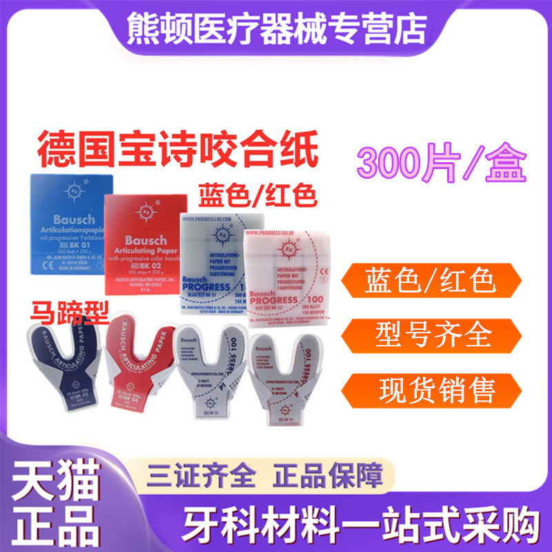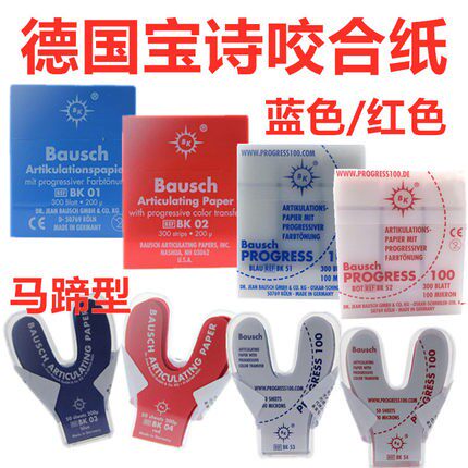 📚 德国进口宝诗 Bausch咬合纸BK51/52 100微米300片红蓝色牙科材料