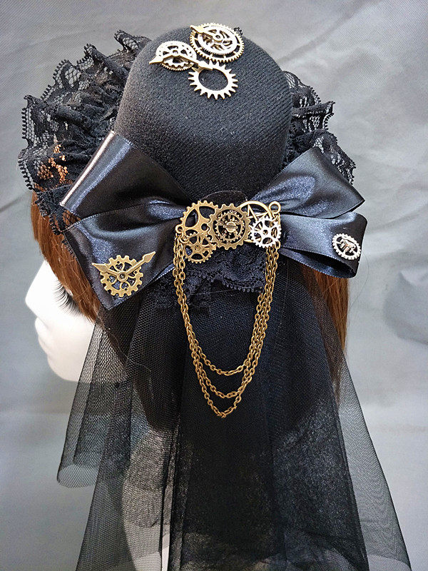 📚 包邮蒸汽朋克搞死系 Lolita复古蝴蝶结齿轮风礼帽长纱流苏cos发饰