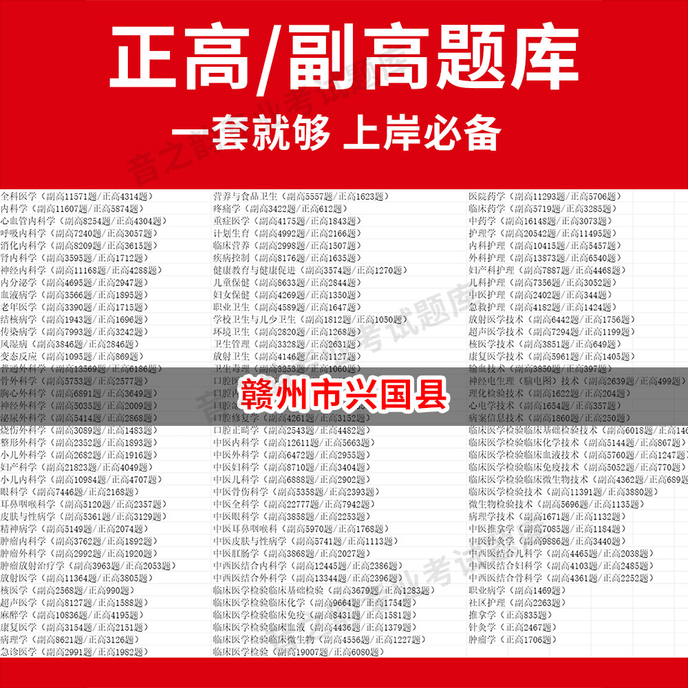 📚 赣州市兴国县医学高级职称副高正高级考试宝典题库卫生高级职称历年真题护理学教材妇产科副主任医师护师中医内科学超声医学全科放