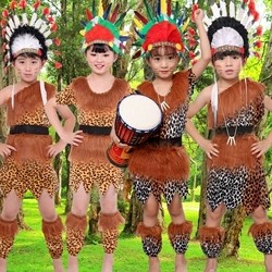 📚 野人服装毛利人战舞服豹纹土著人猎人合唱服男女款大王叫我来巡山