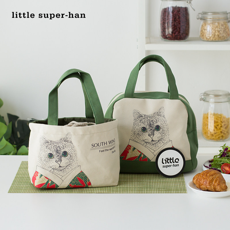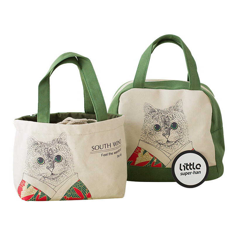 📚 日韩环保便当包帆布森系手提包小清新女包小号水桶饭盒袋可爱卡通