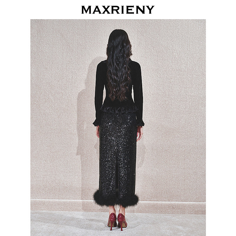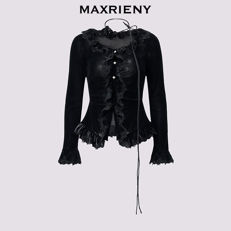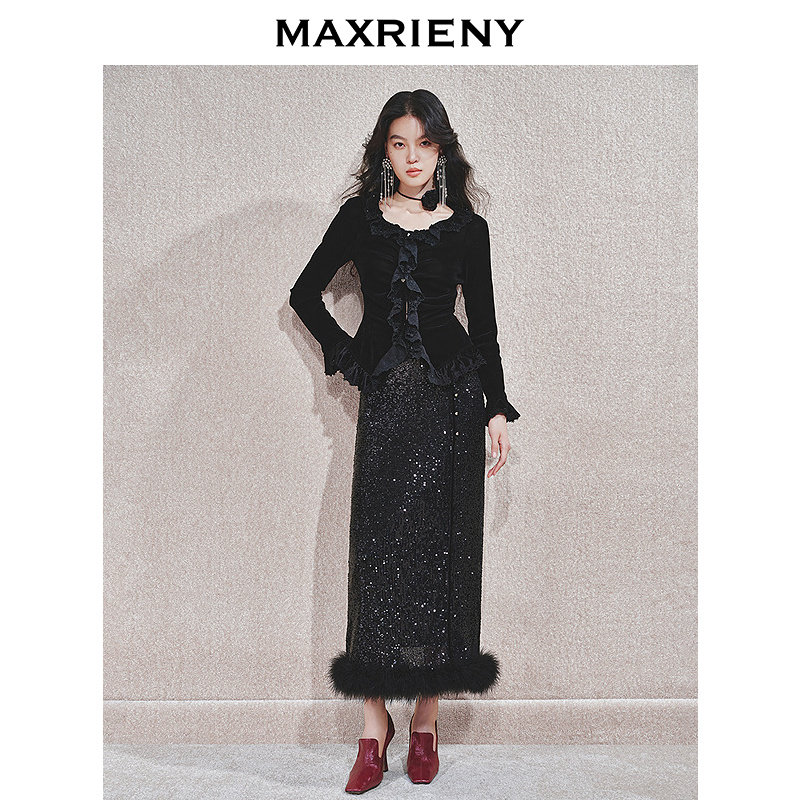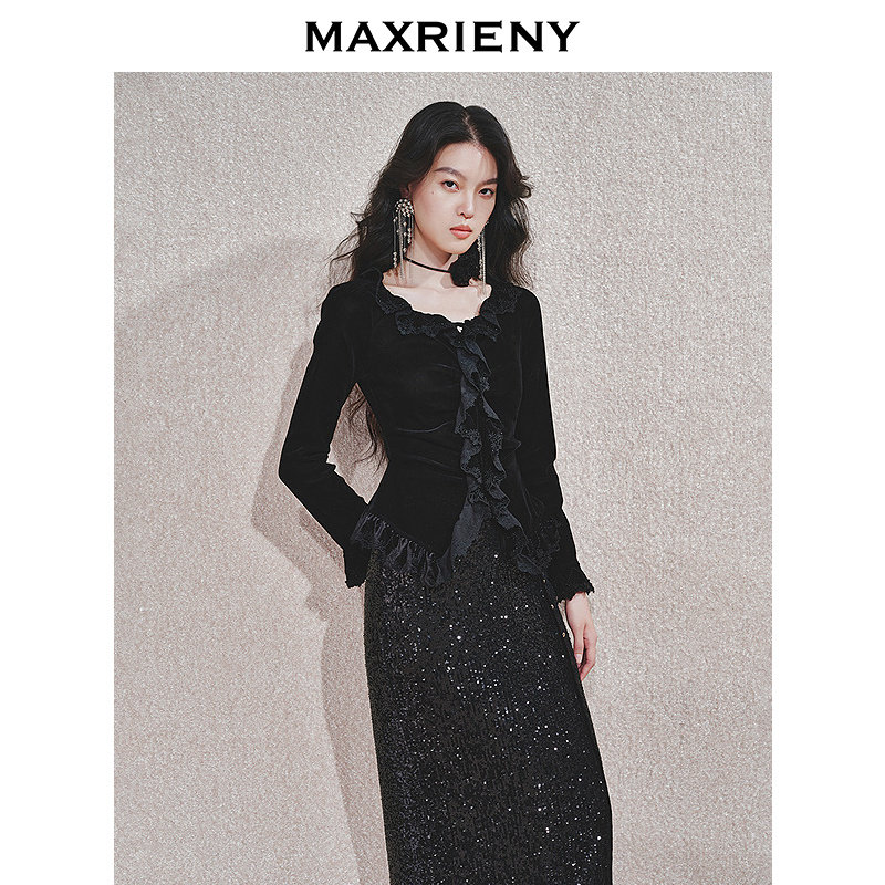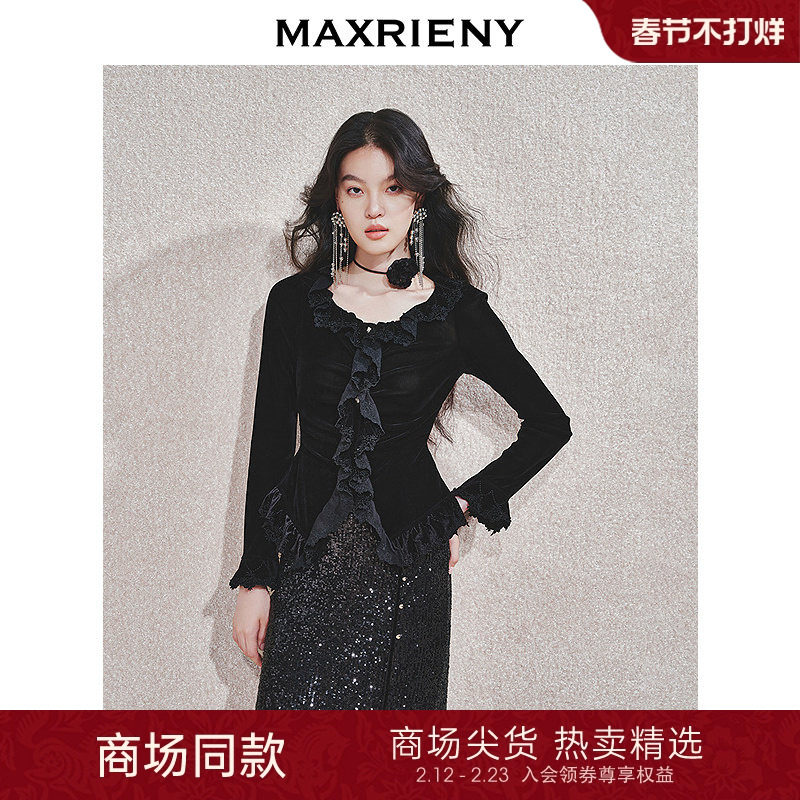 📚 【商场同款-节庆穿搭】MAXRIENY精致优雅绣花钉珠上衣修身显瘦女