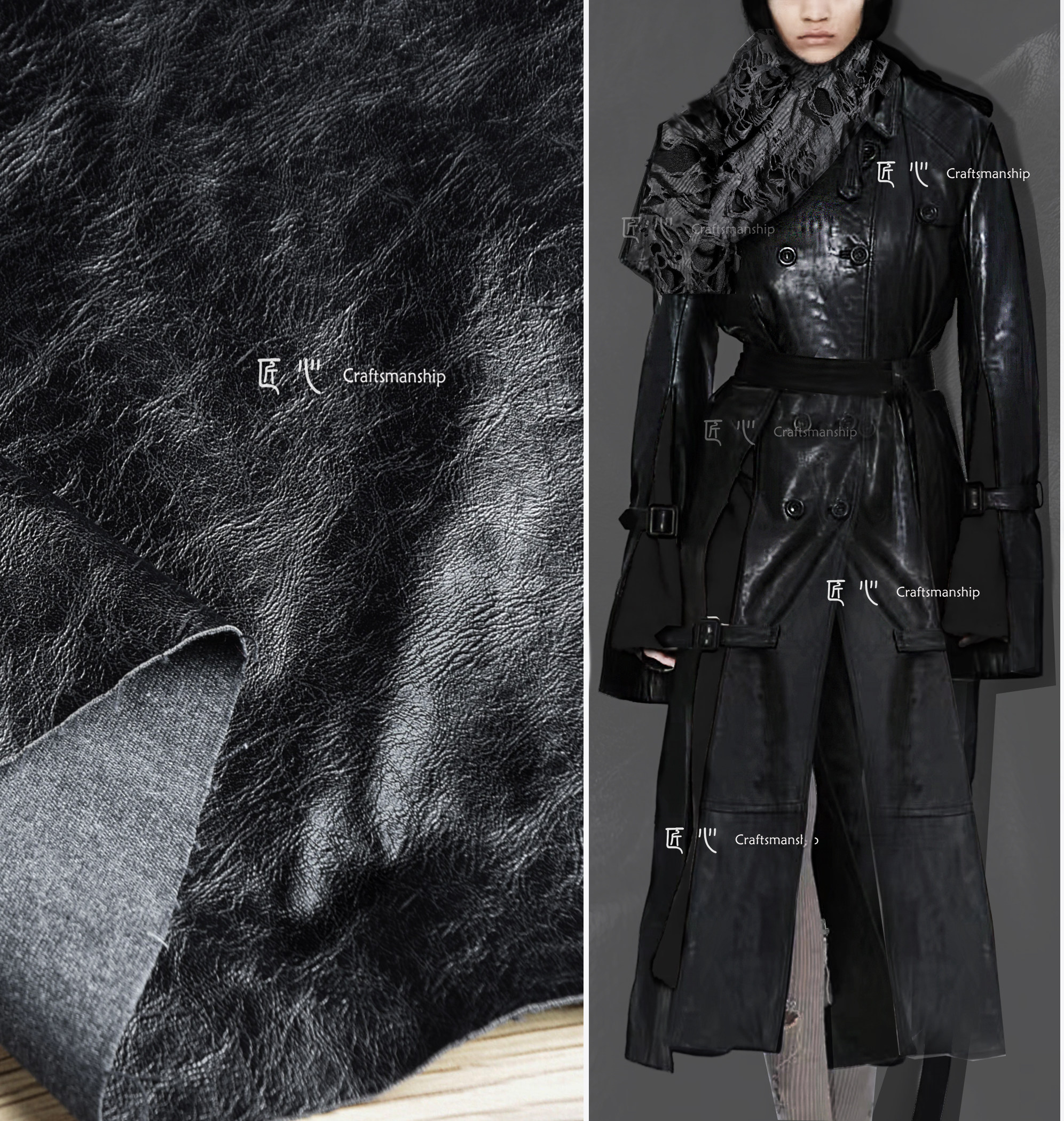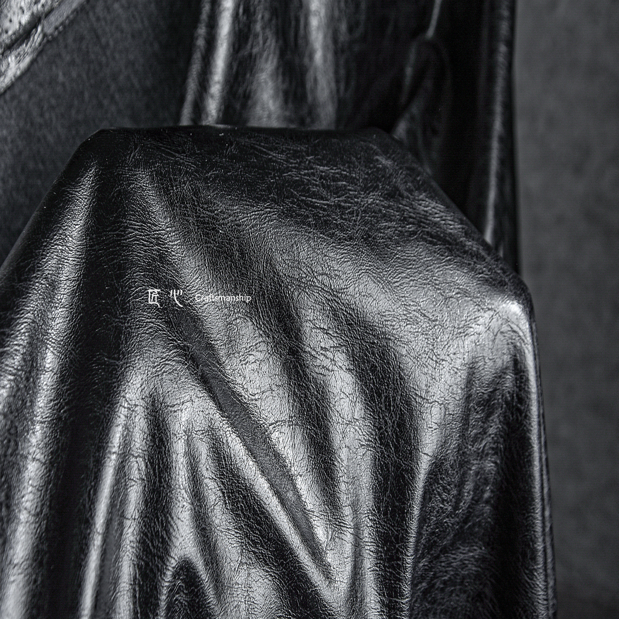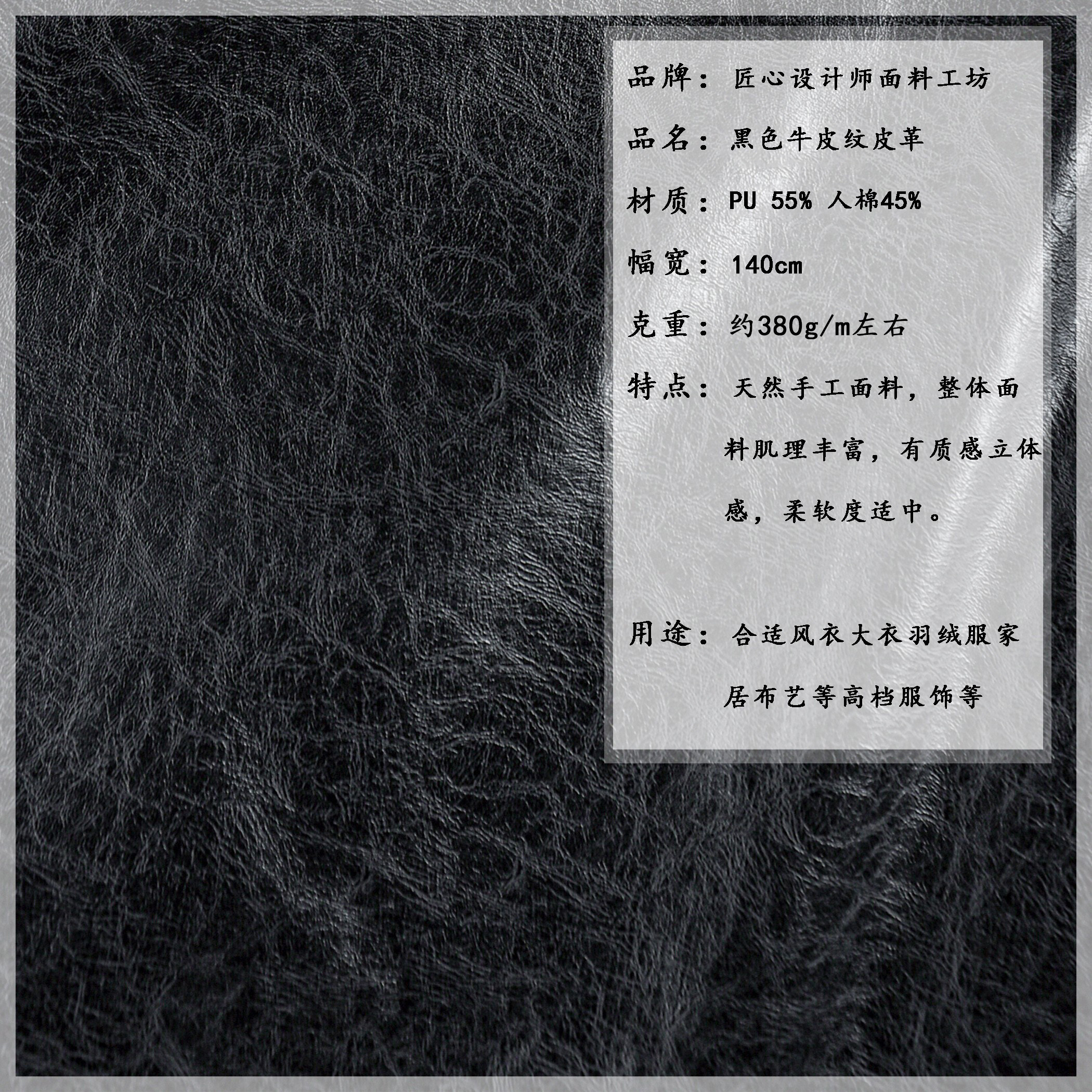 📚 黑色牛皮纹肌理皮革 复古仿真皮创意PU手工diy包服装设计师面料