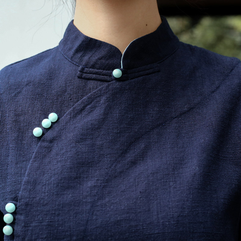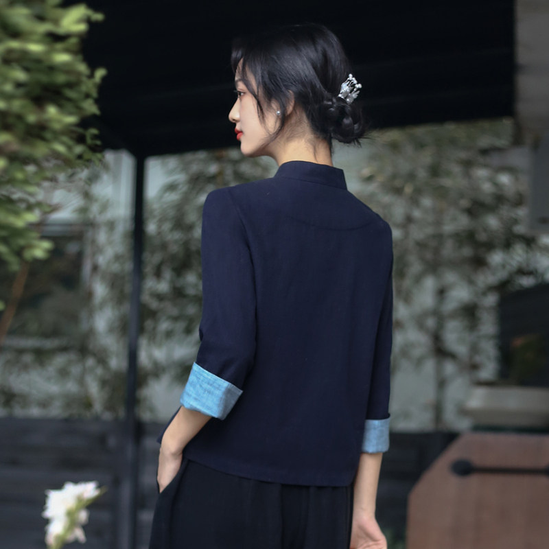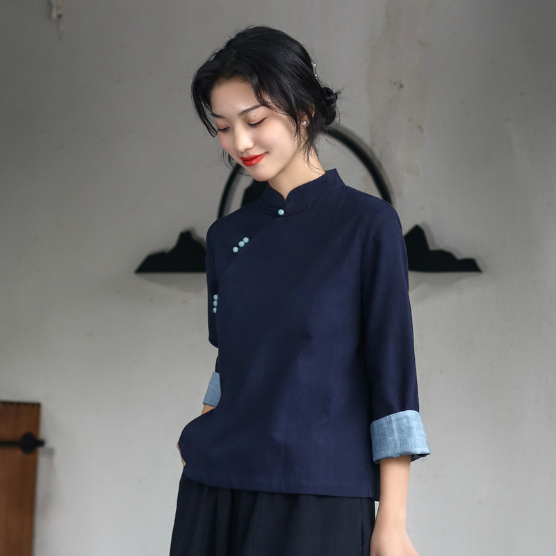 📚 中式禅意茶服套装女春秋茶艺师服装中国风棉麻禅服居士服复古上衣