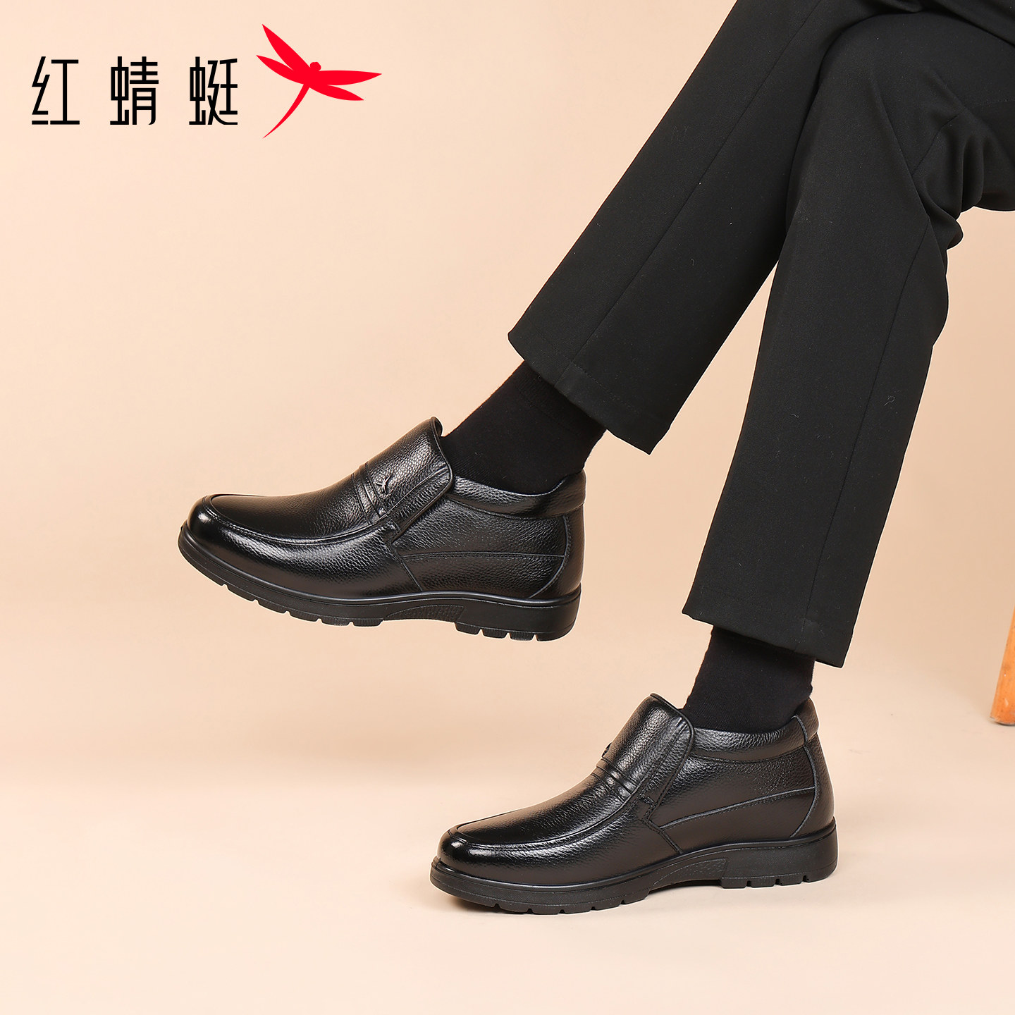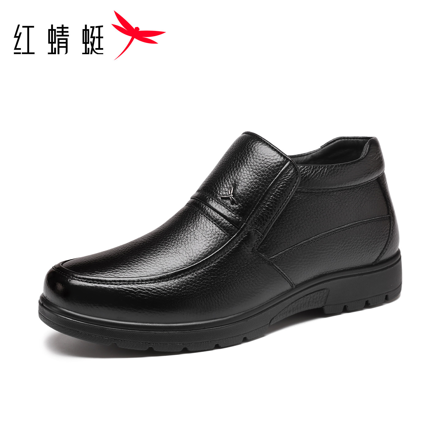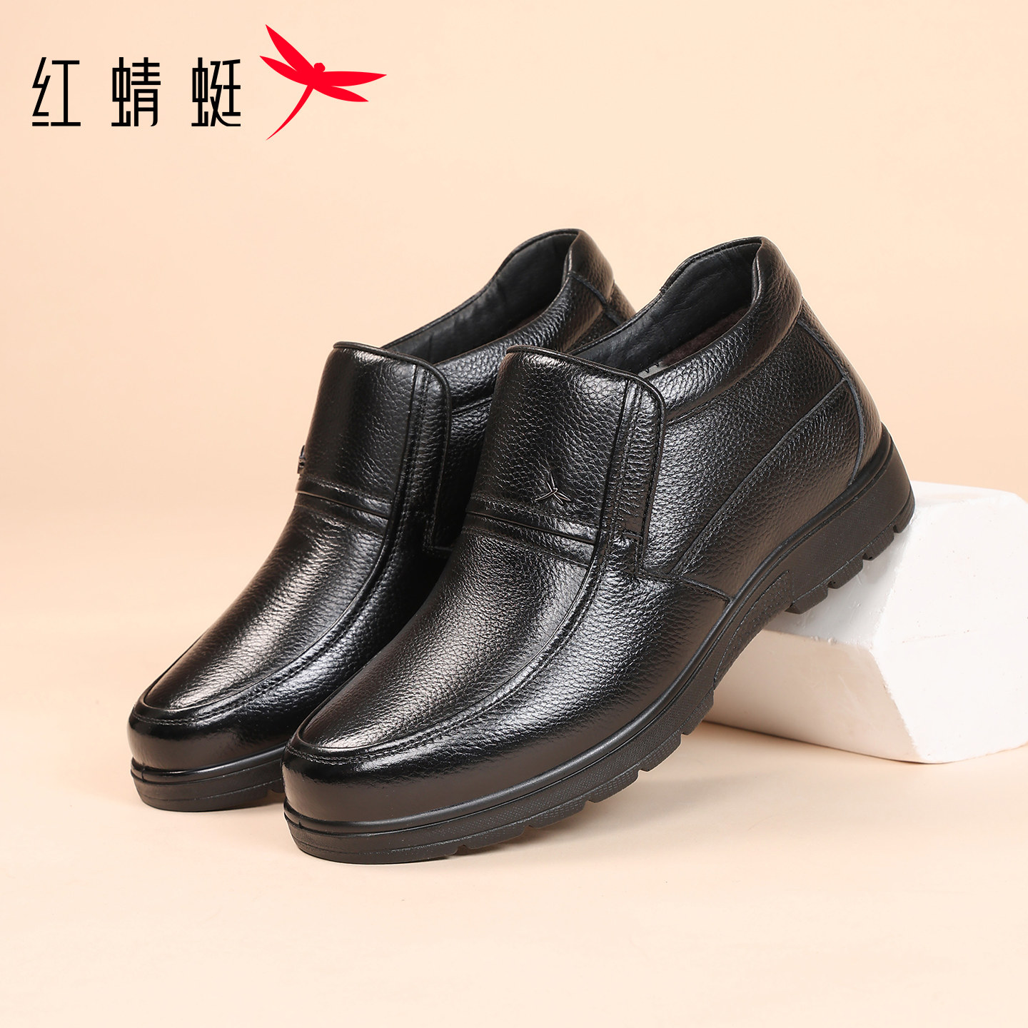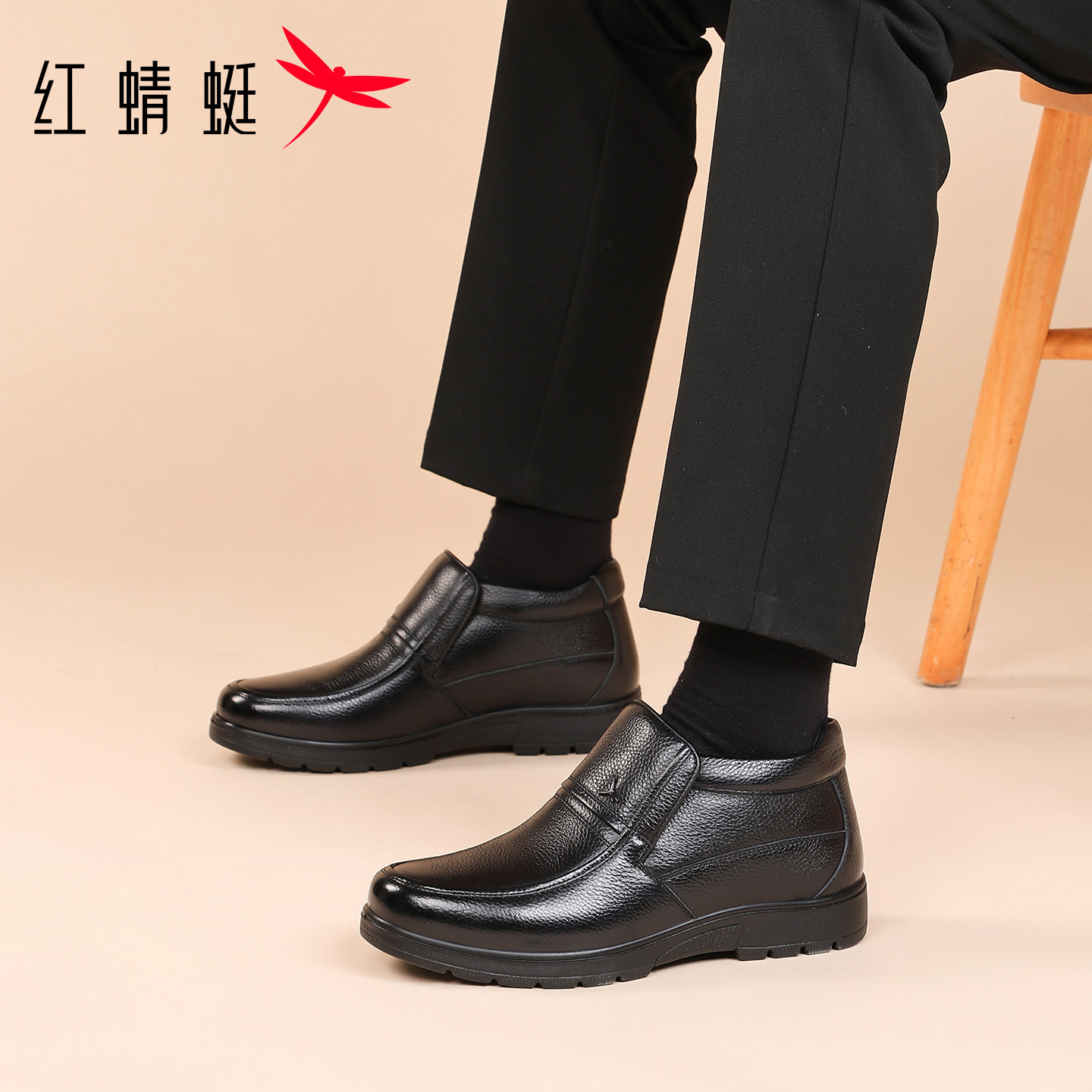 📚 红蜻蜓男鞋冬季鞋子男士高帮休闲皮鞋男真皮加绒加厚棉鞋爸爸冬天
