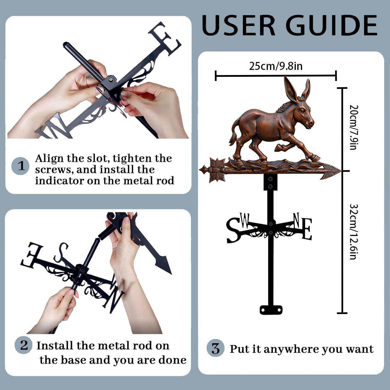 📚 古铜色驴向标风向指示器户外风向标屋顶安装庭院露台风向标