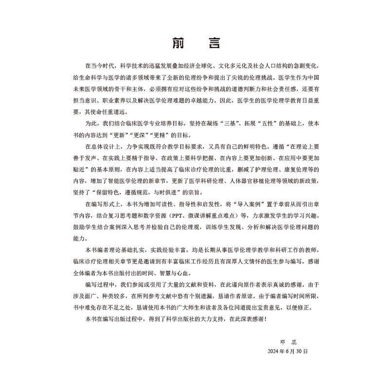 📚 医学伦理学 十四五普通高等教育本科规划教材 邓蕊 内容涵盖医学伦理基本理论医学人际关系伦理及临床诊疗伦理等内容 科学出版社