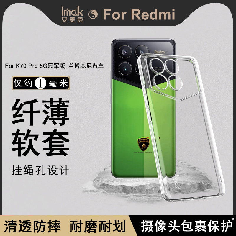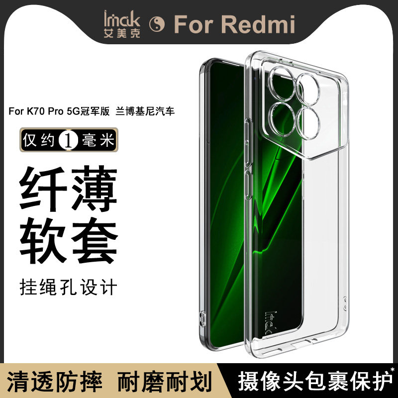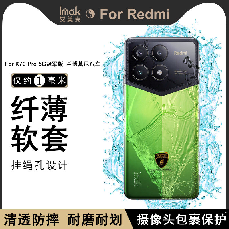 📚 imak适用于红米K70Pro 5G冠军版 兰博基尼汽车新款透明手机壳squadra corse全包防摔保护套清水简约硅胶软壳