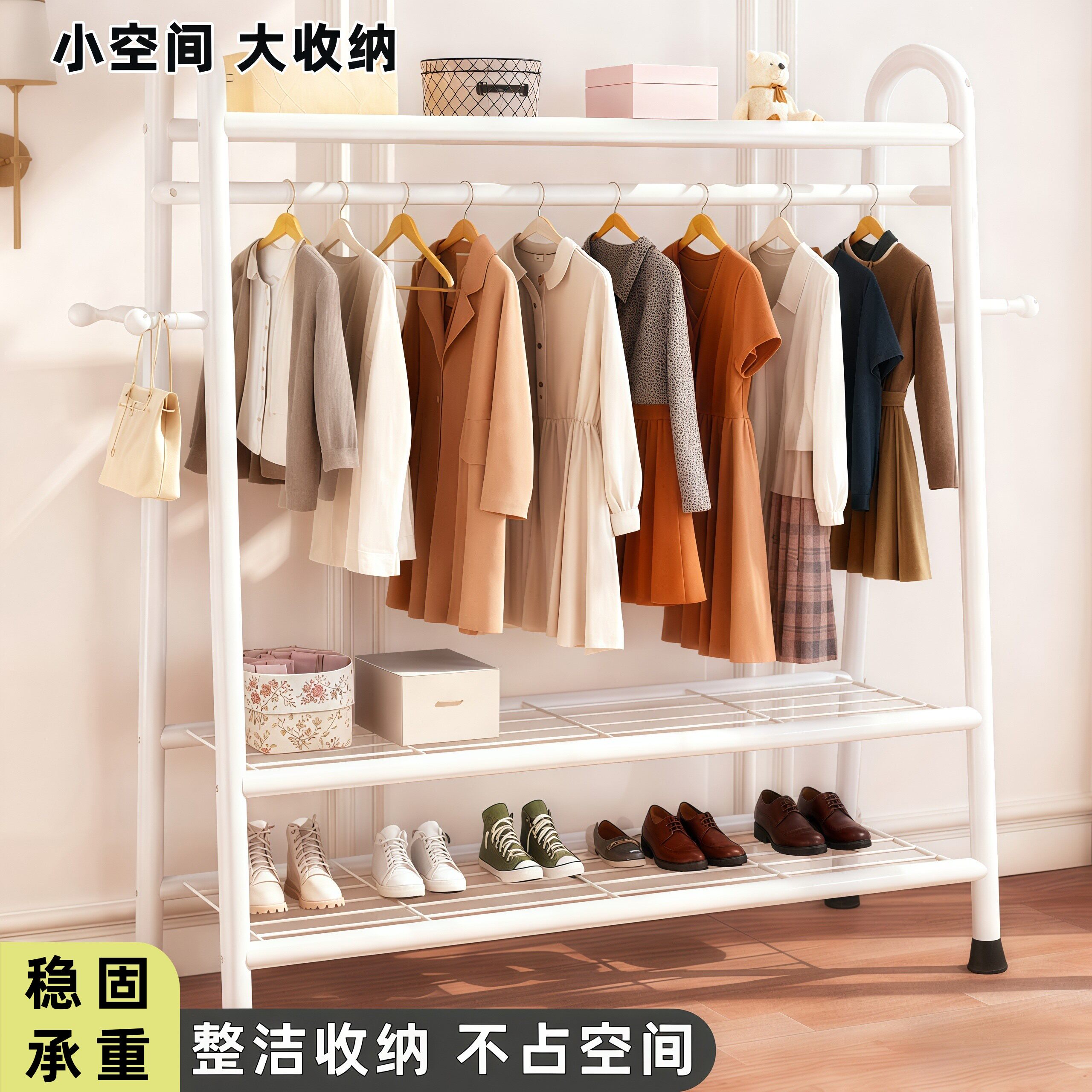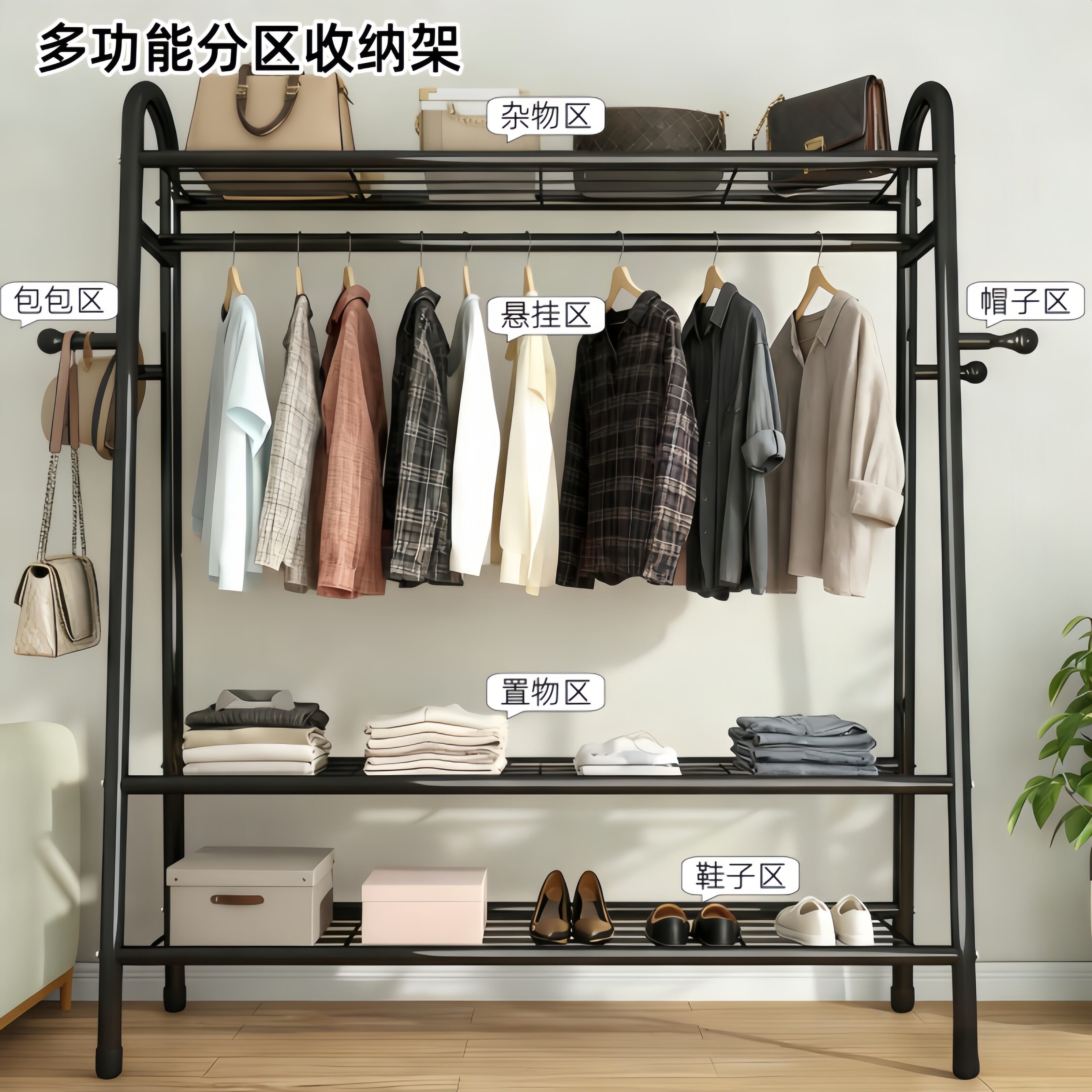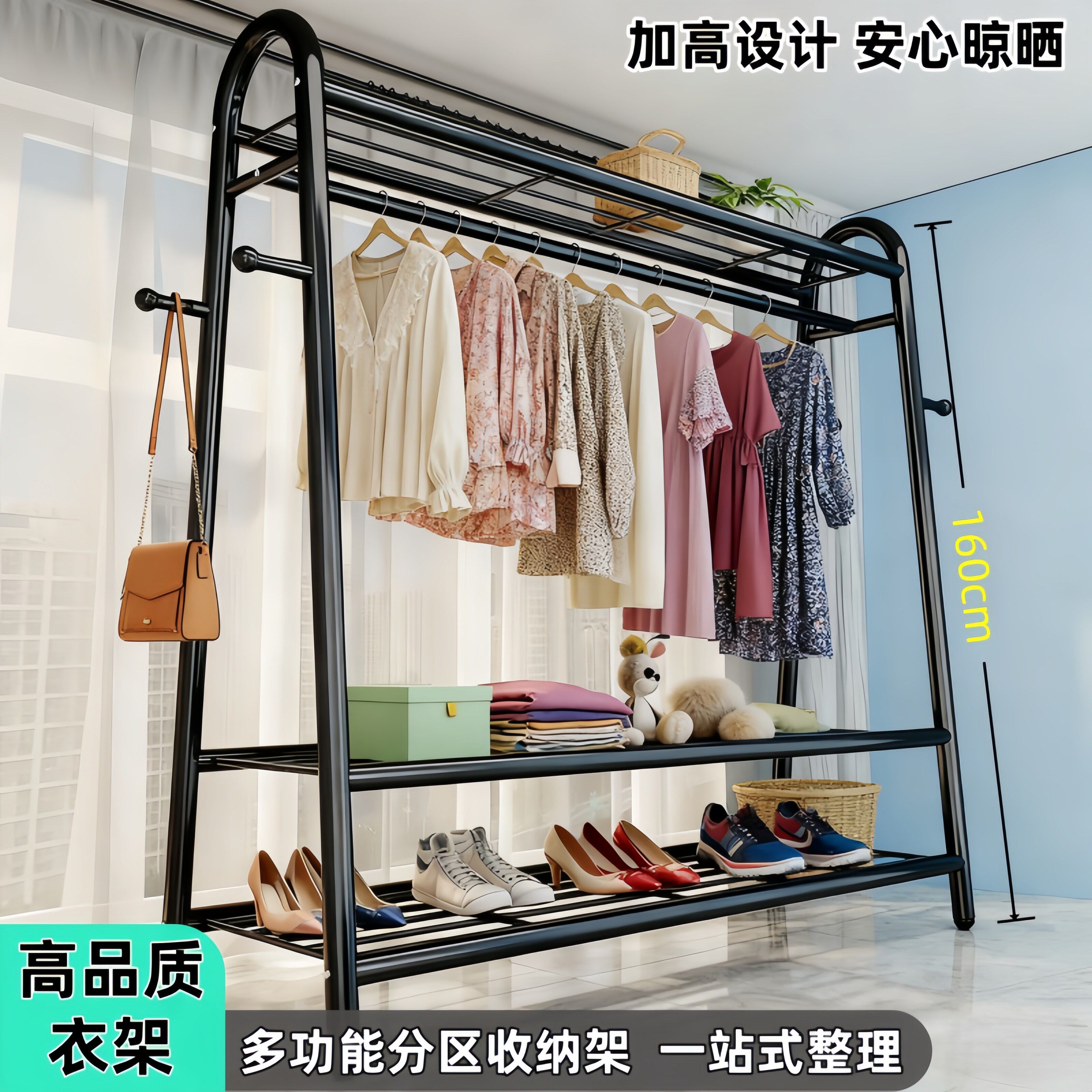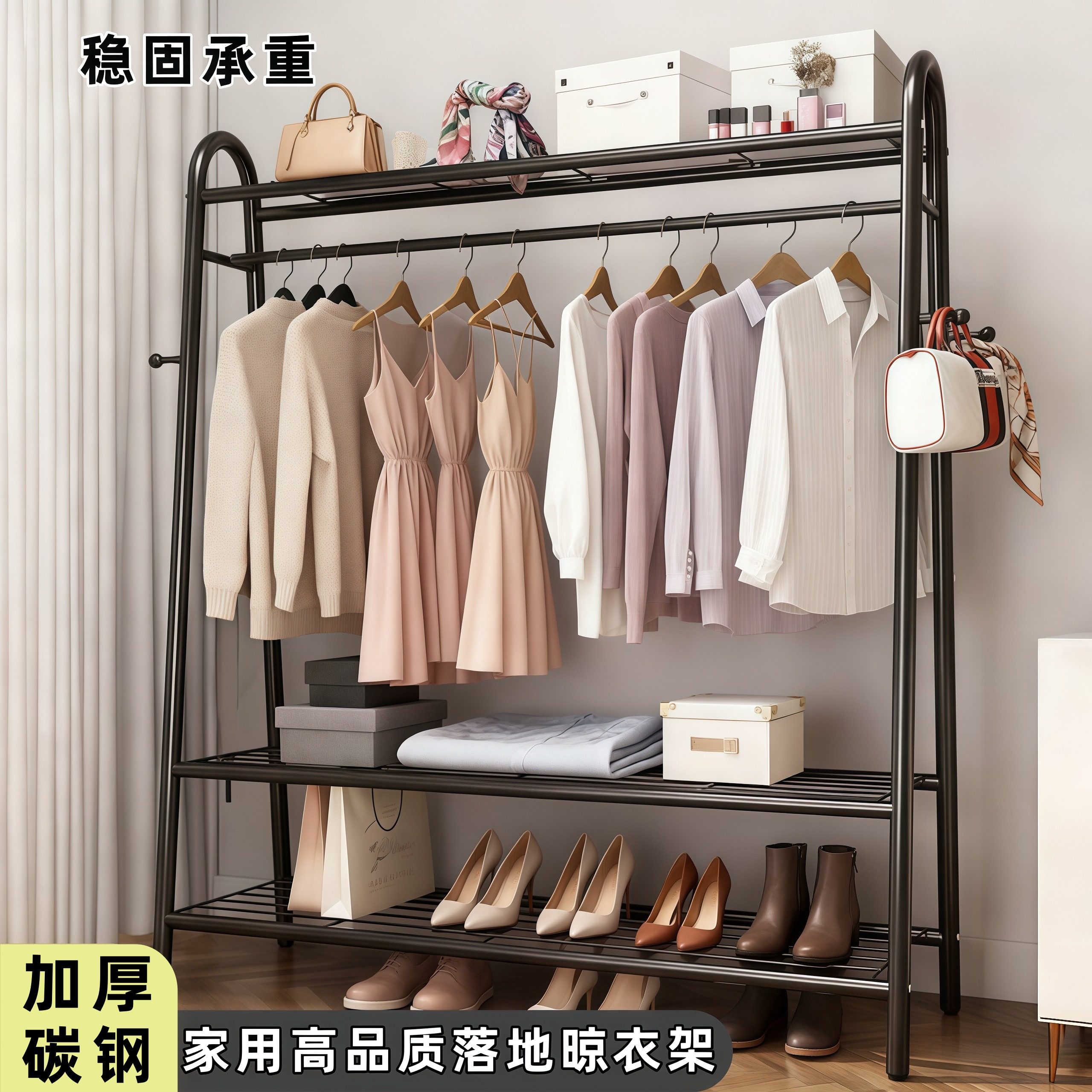 📚 家用卧室阳台落地立式晾衣架宿舍出租屋多功能分区挂衣架金属碳钢