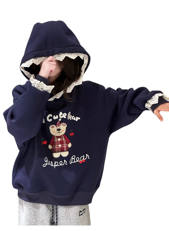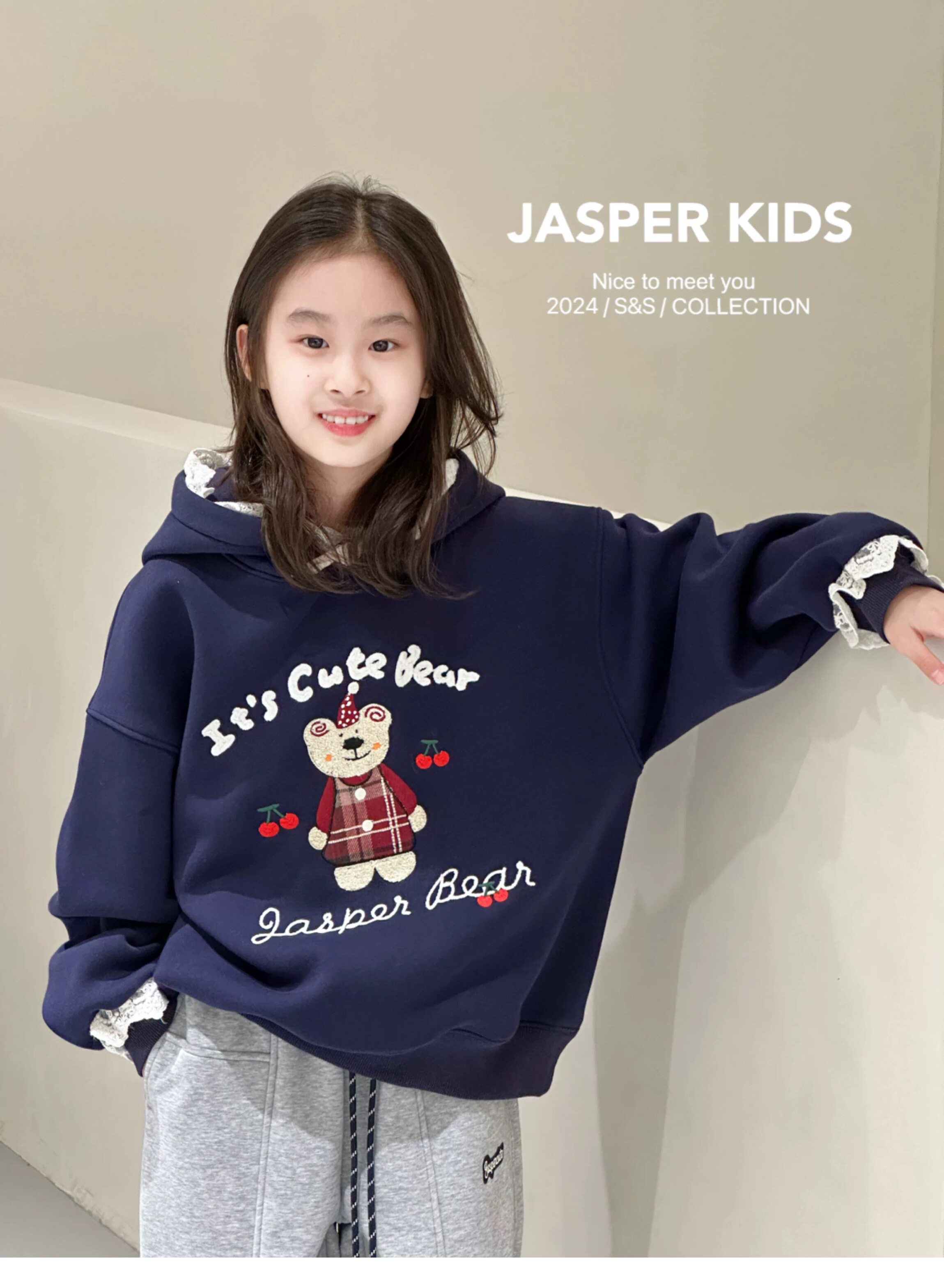📚 波拉韩国童装女童加绒卫衣秋冬款儿童洋气连帽上衣中大童加厚外套