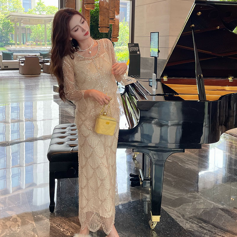 📚 两件套裙装夏温柔气质套装显瘦长袖防晒半身裙套装重工钉珠