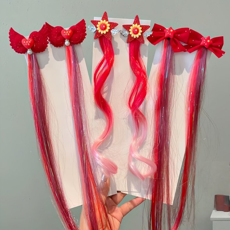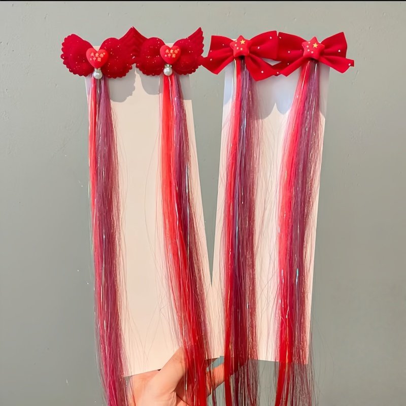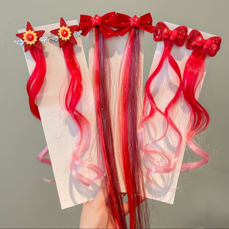📚 儿童十一国庆节红色假发辫子发夹发饰女童编发夹子发卡高颜值头饰