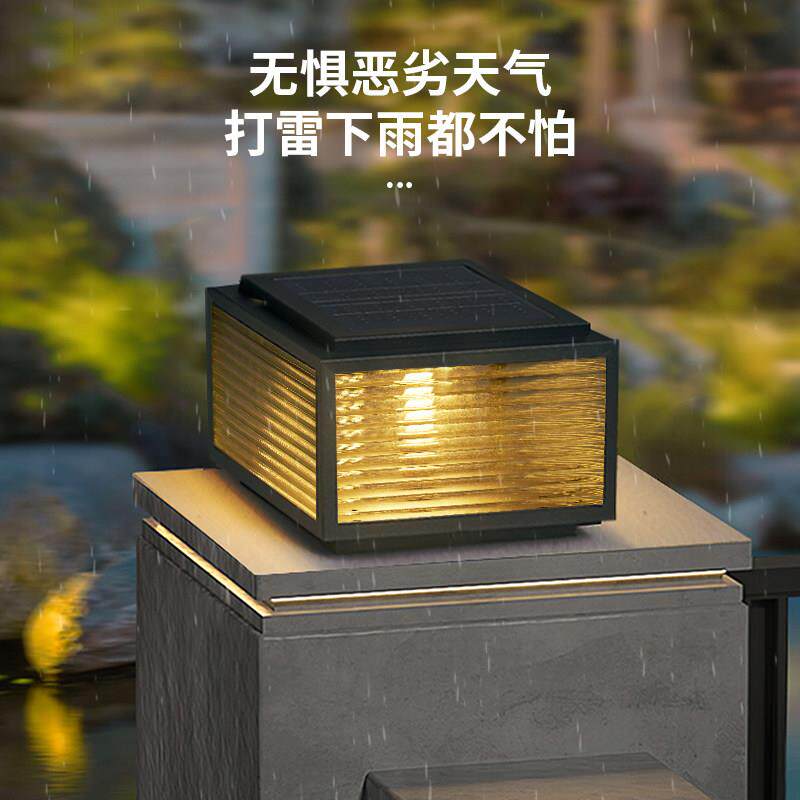 📚 太阳能庭院柱头灯钢化玻璃防水门柱灯景观院落花园阳台户外围墙灯