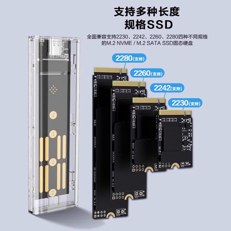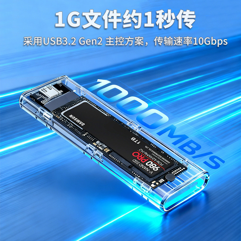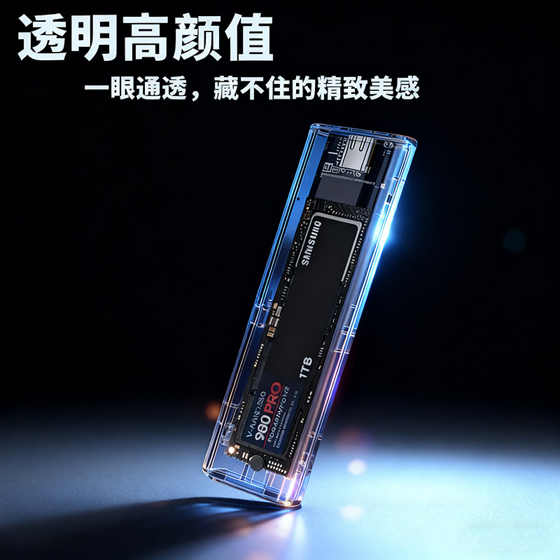 📚 华顾m2透明硬盘盒nvme转USB3.1固态外接NGFF读取器双协议呼吸灯效