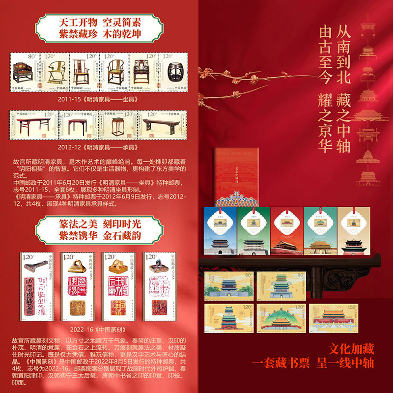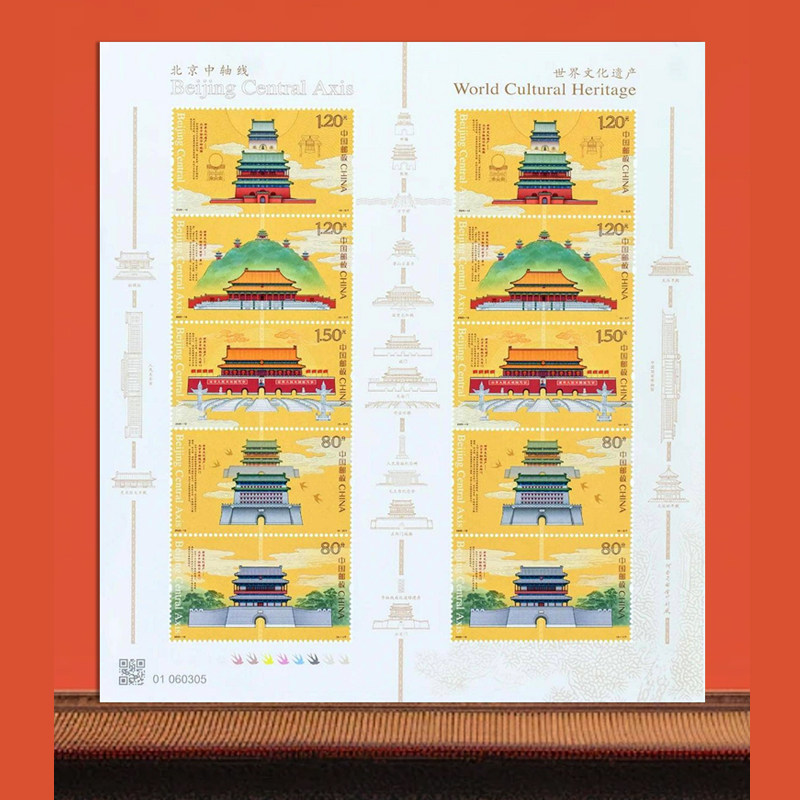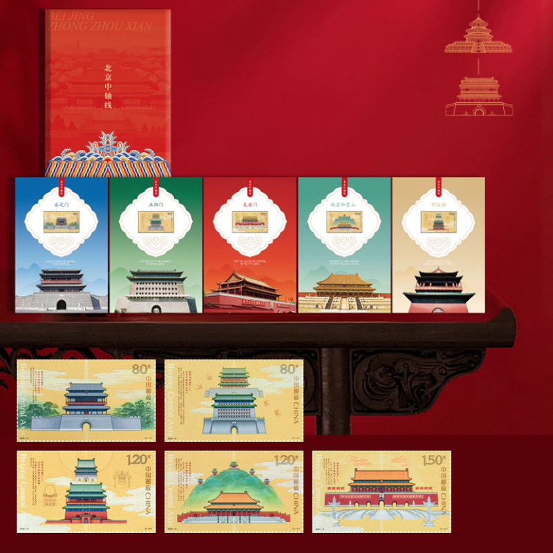 📚 中轴国宝80枚珍邮5张藏书票 世界文化遗产—北京中轴线 特种邮票