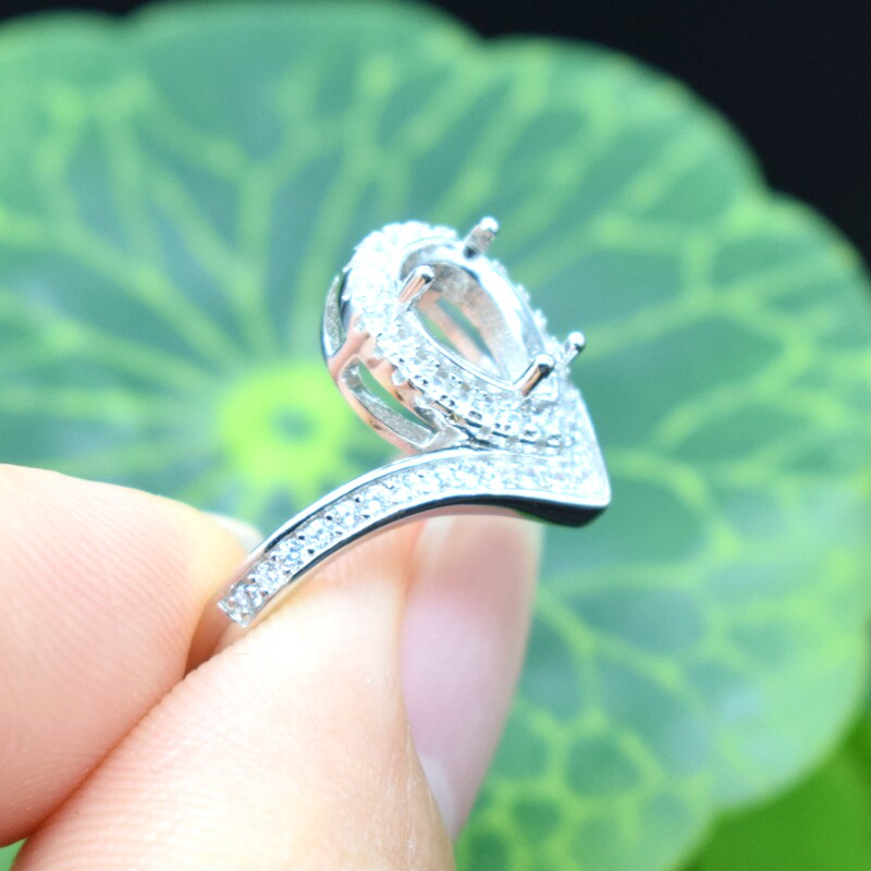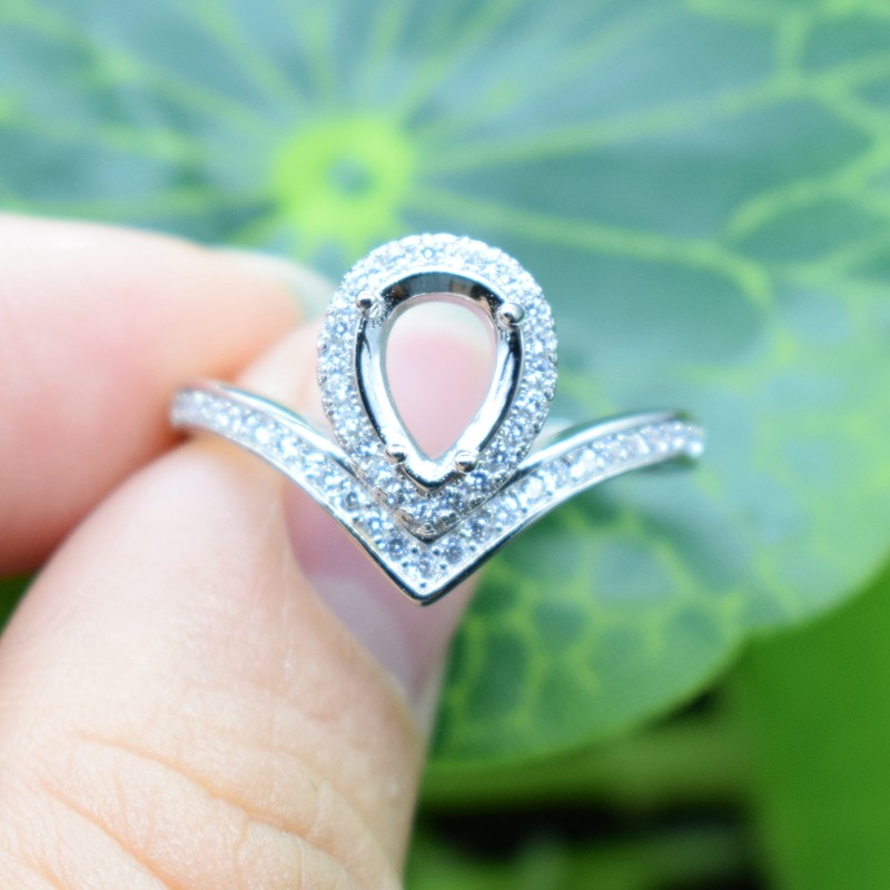 📚 日韩版水滴形纯银戒指空托女款6*8活口925银托镀24K白金钻戒托diy