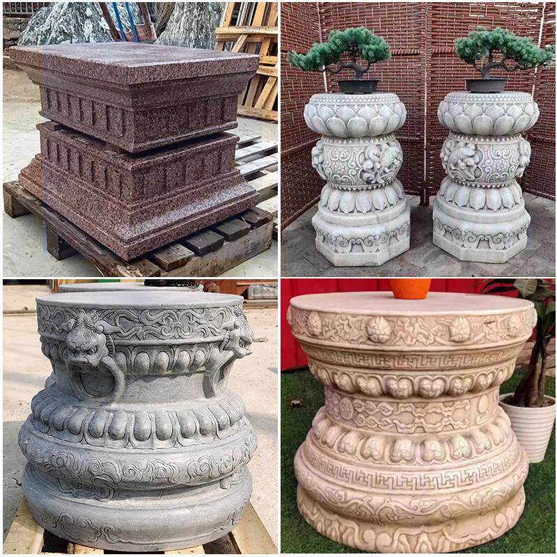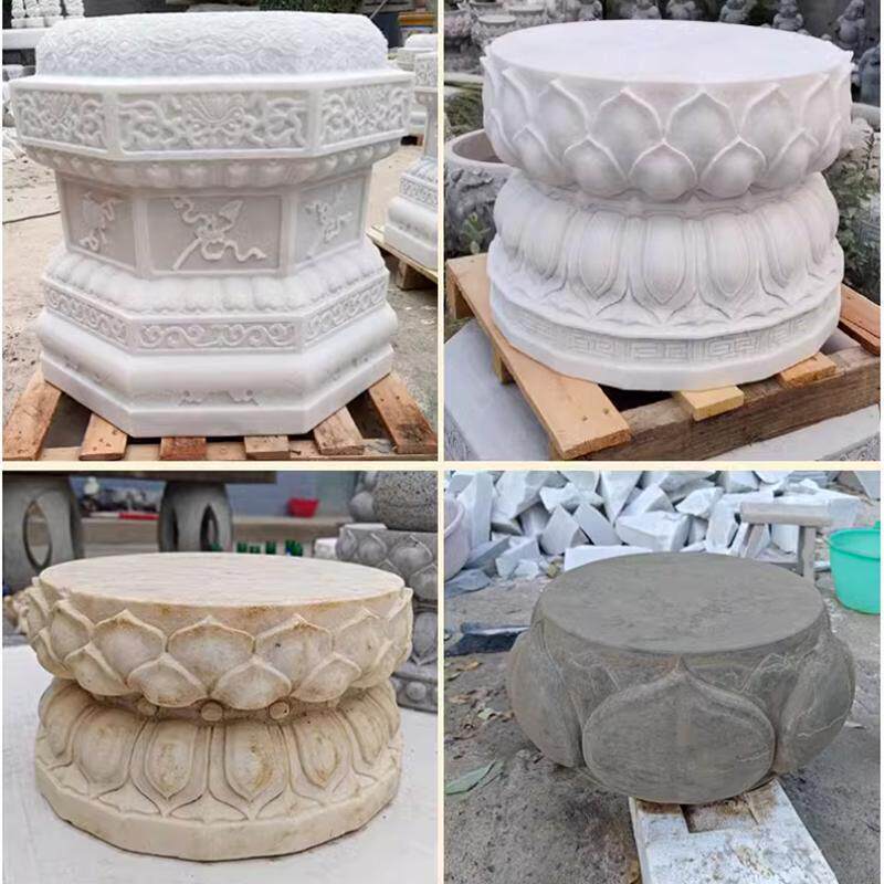 📚 石雕莲花底座须弥座别墅花盆石墩汉白玉盆景底座彷古莲花石座摆件